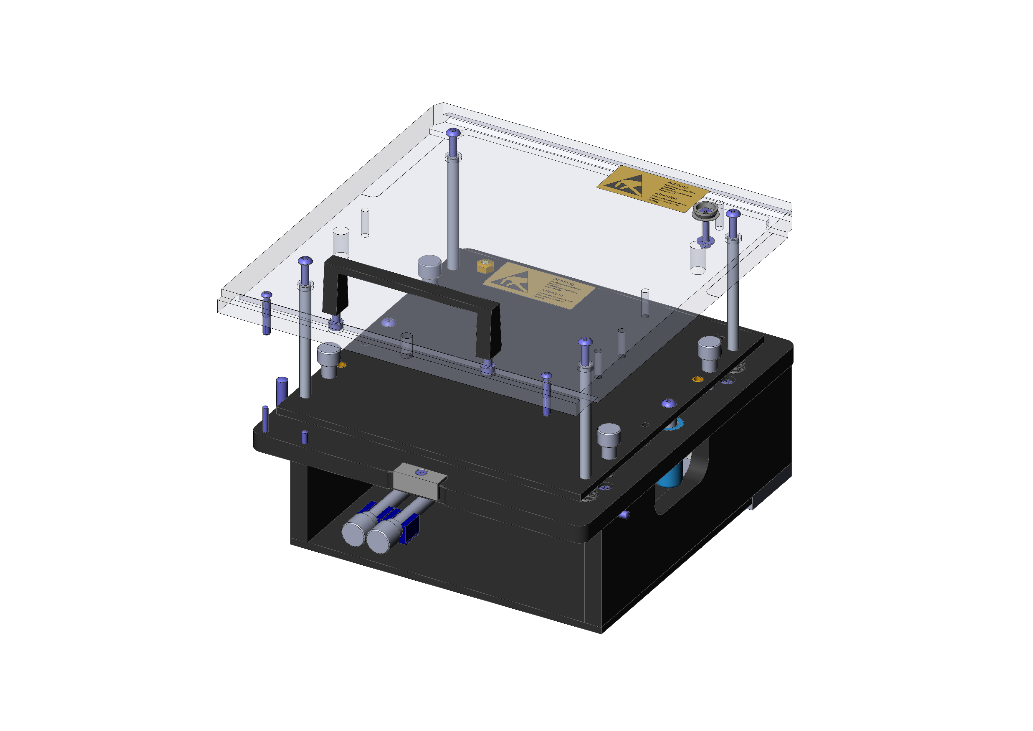 - Pressure plate unit and probe plate unit can be screwed together with stacking screws to form a unit with protected probe field
