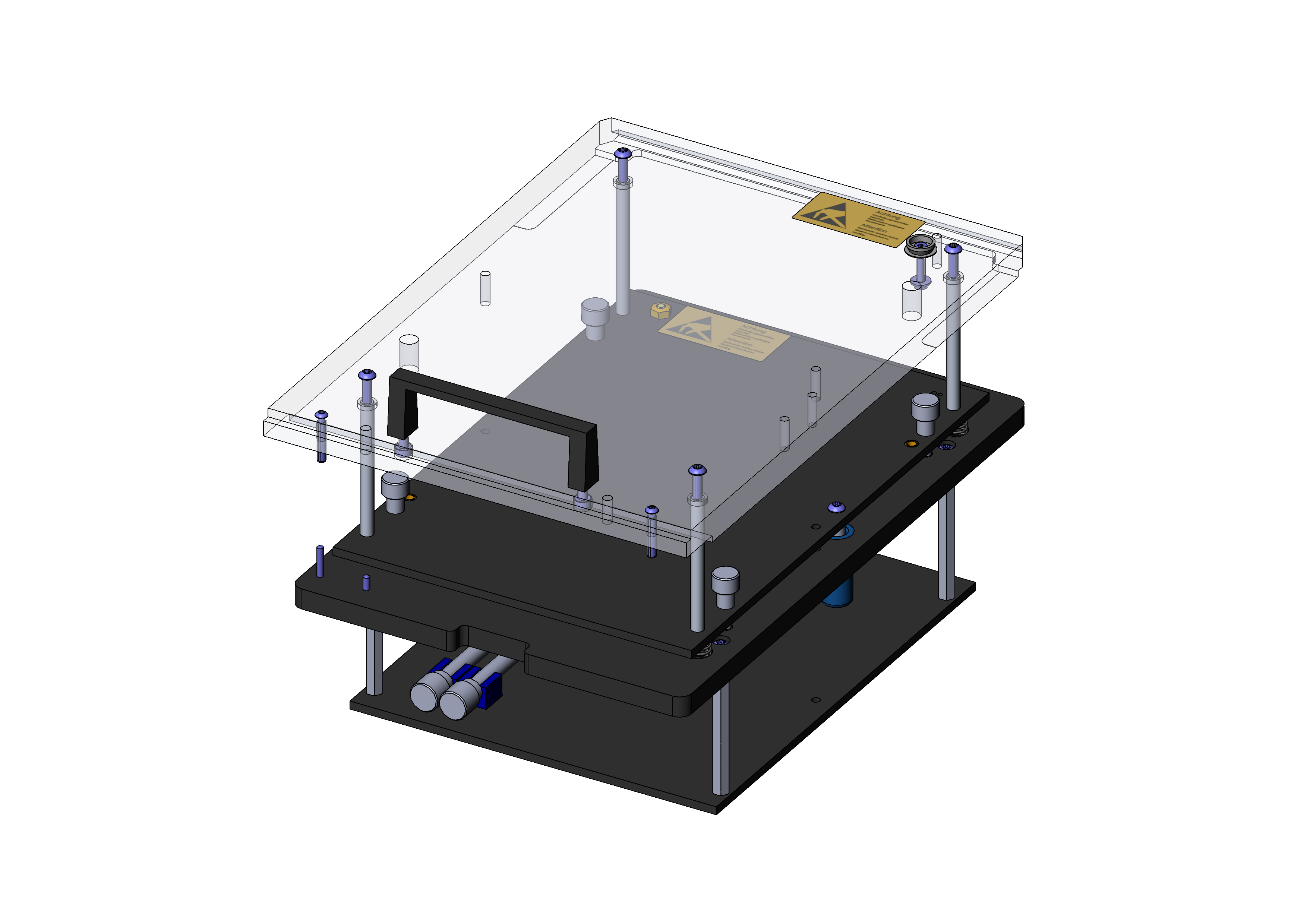 - Pressure plate unit and probe plate unit can be screwed together with stacking screws to form a unit with protected probe field
