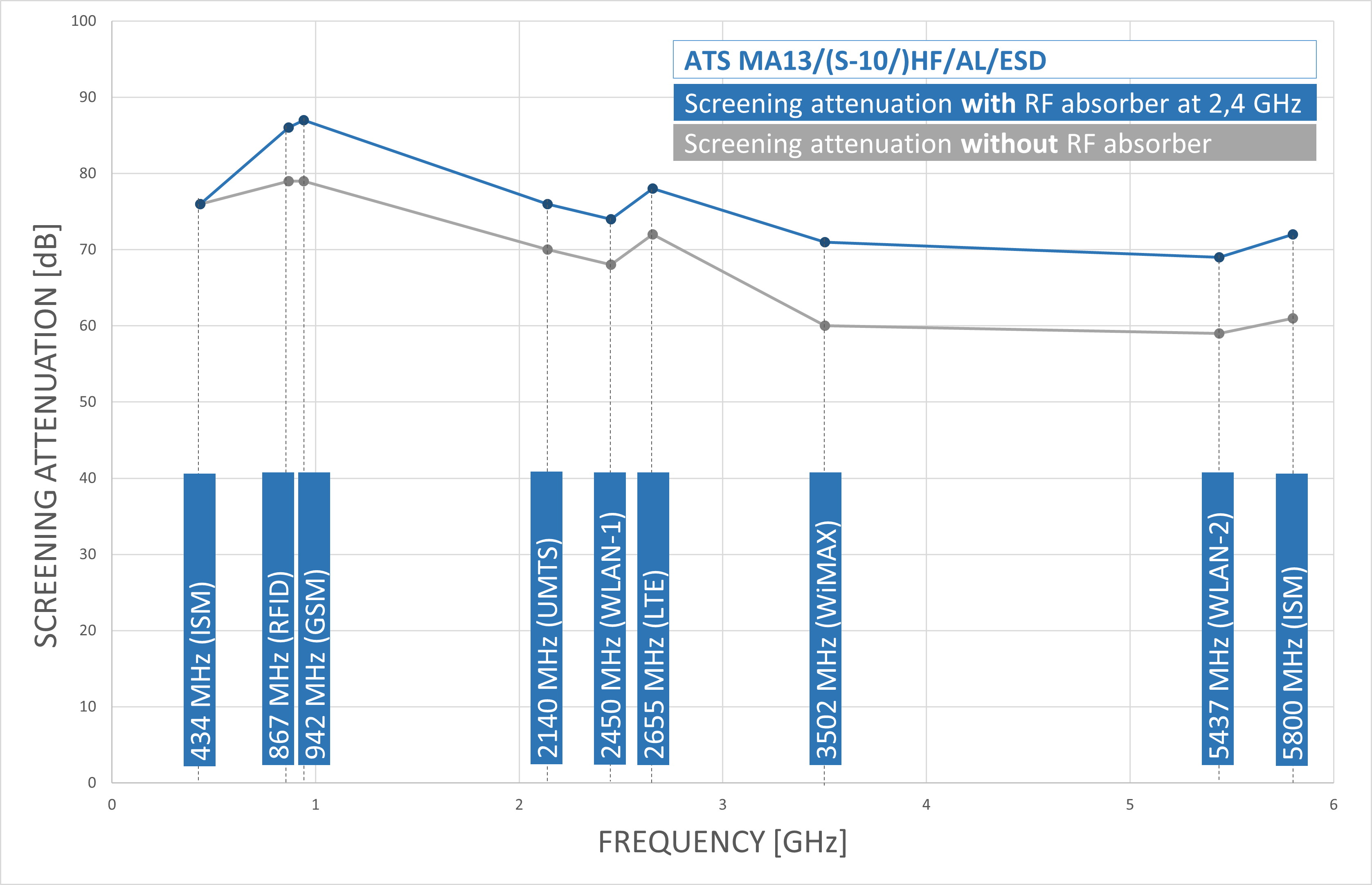- Outstanding shielding attenuation > 60 dB in the frequency range up to 6 GHz