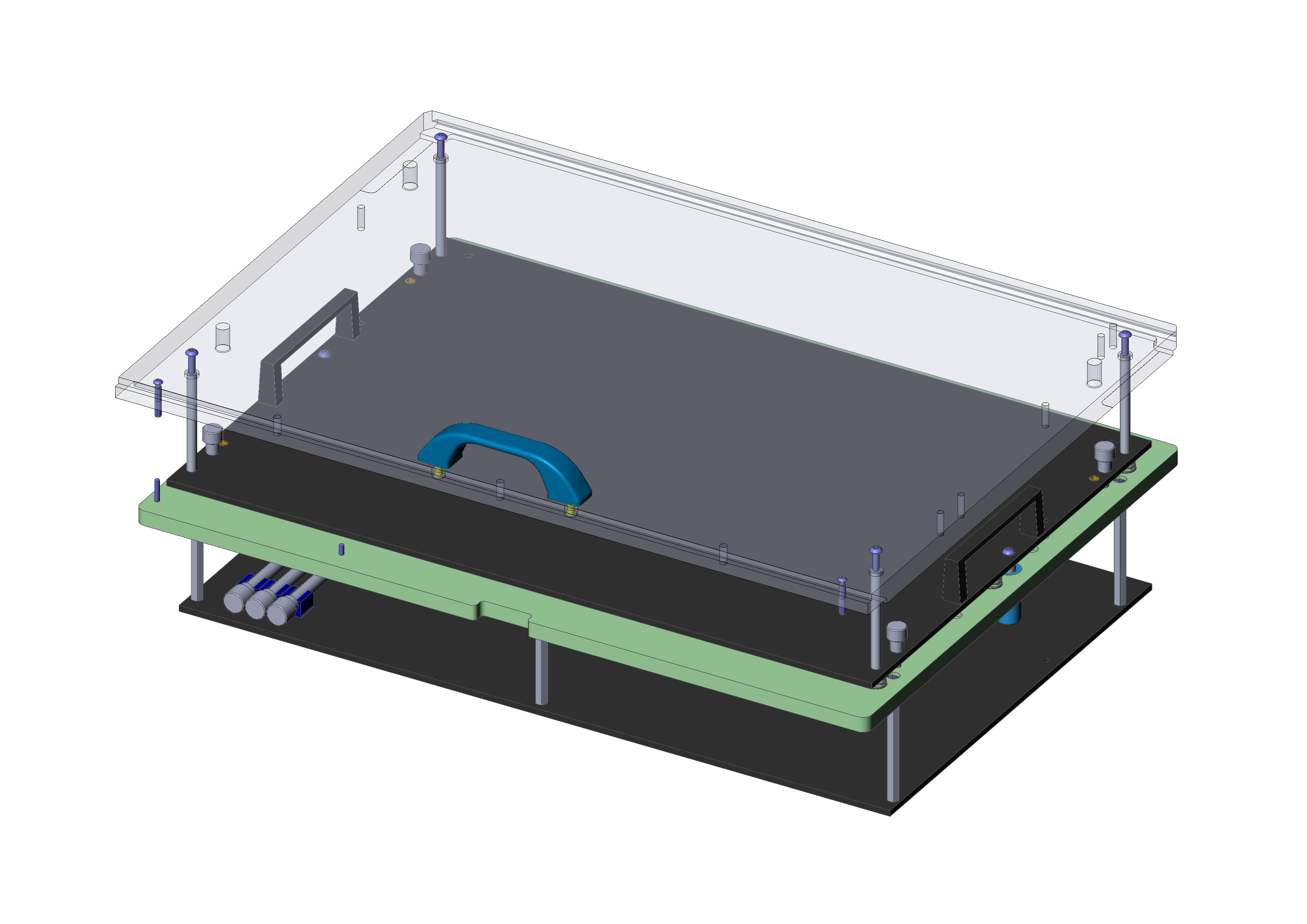 - Pressure plate unit and probe plate unit can be screwed together with stacking screws to form a unit with protected probe field