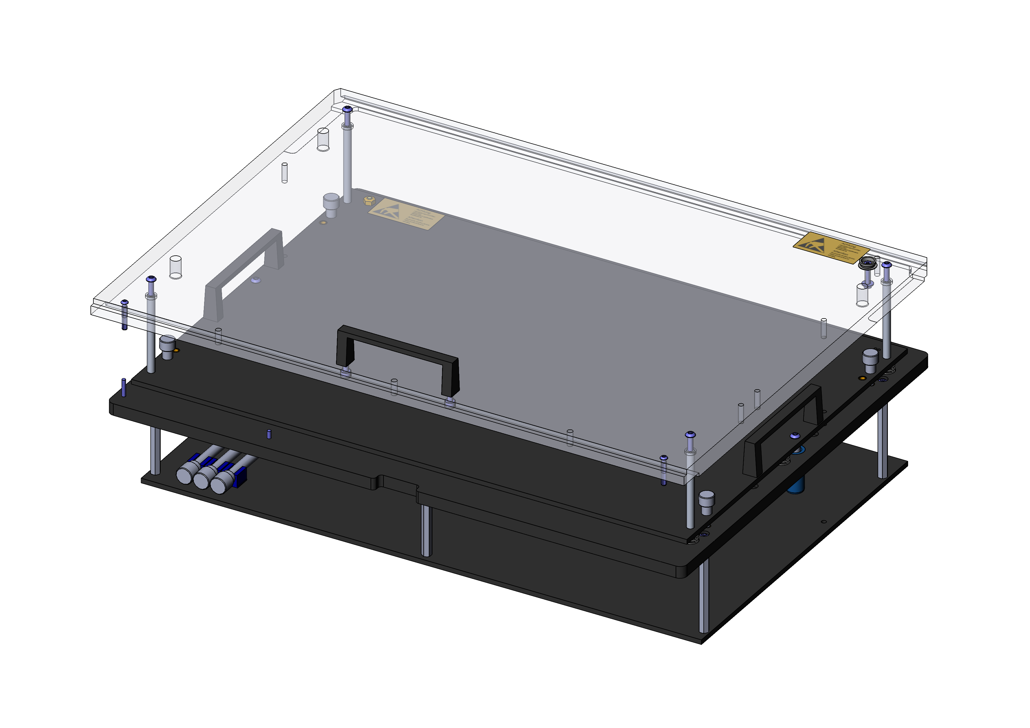 - Pressure plate unit and probe plate unit can be screwed together with stacking screws to form a unit with protected probe field