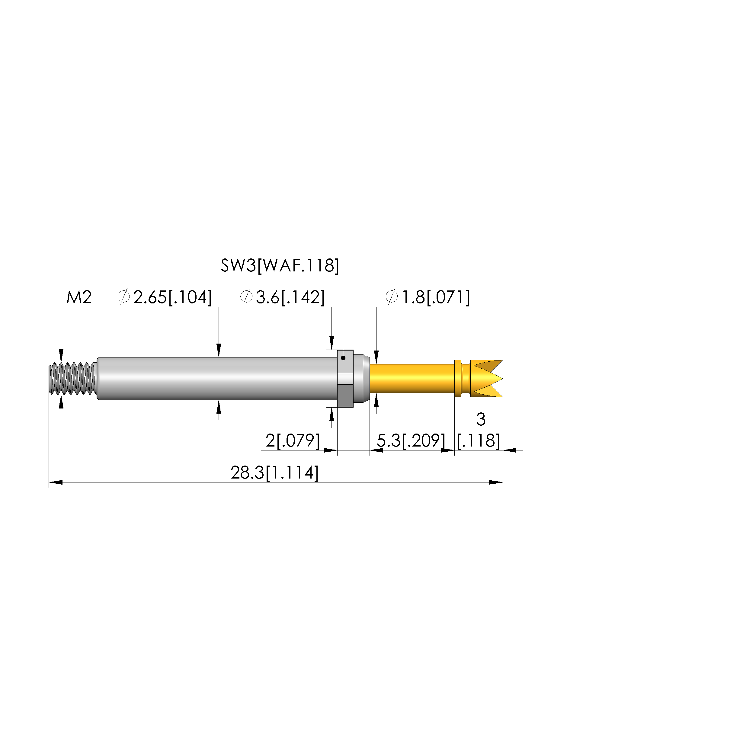- Barrel diameter: 2.65 mm [.104 in]