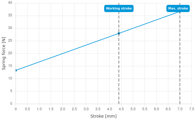 | Spring force at working stroke: | 28 N [100 ozf] |