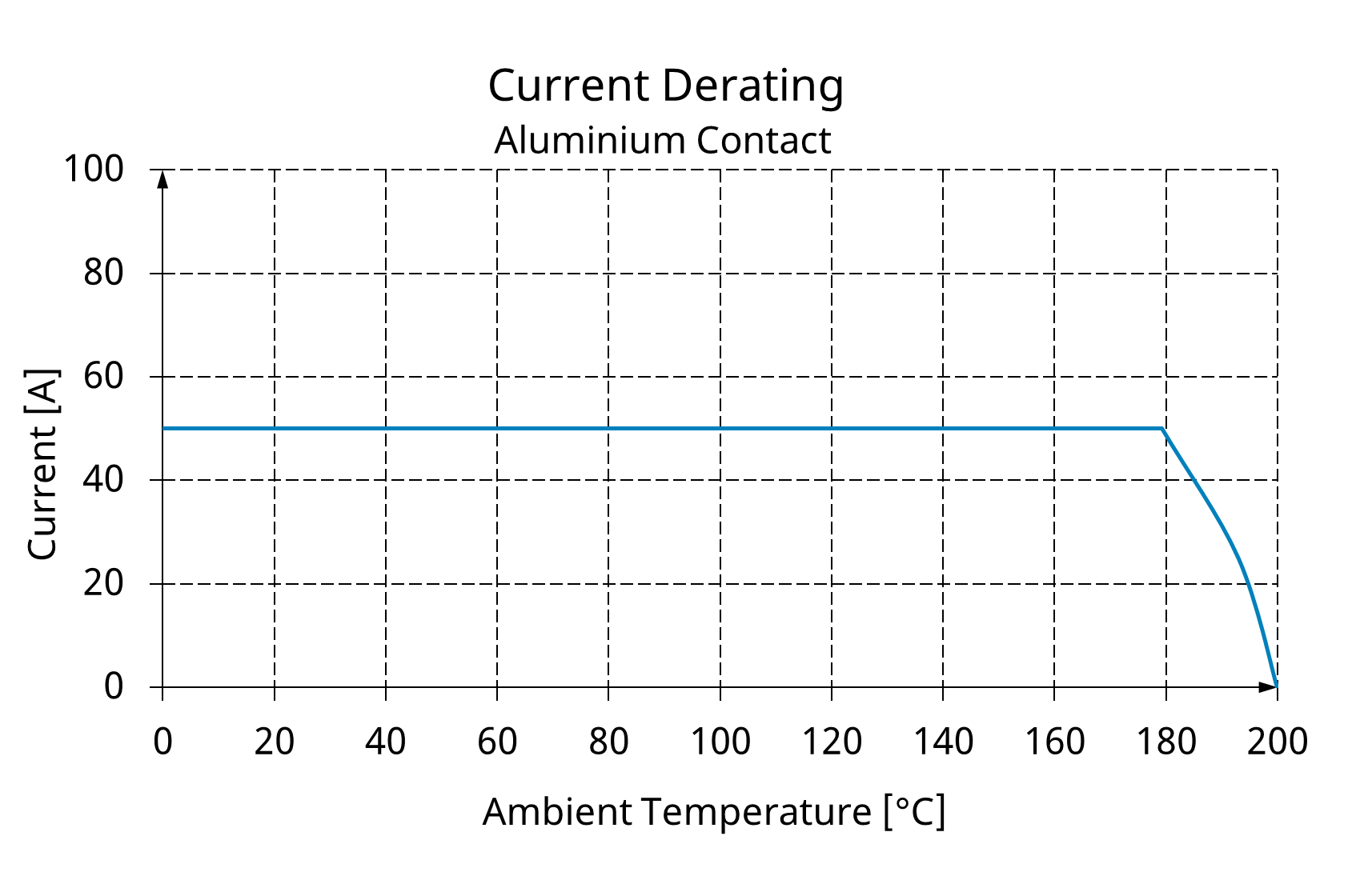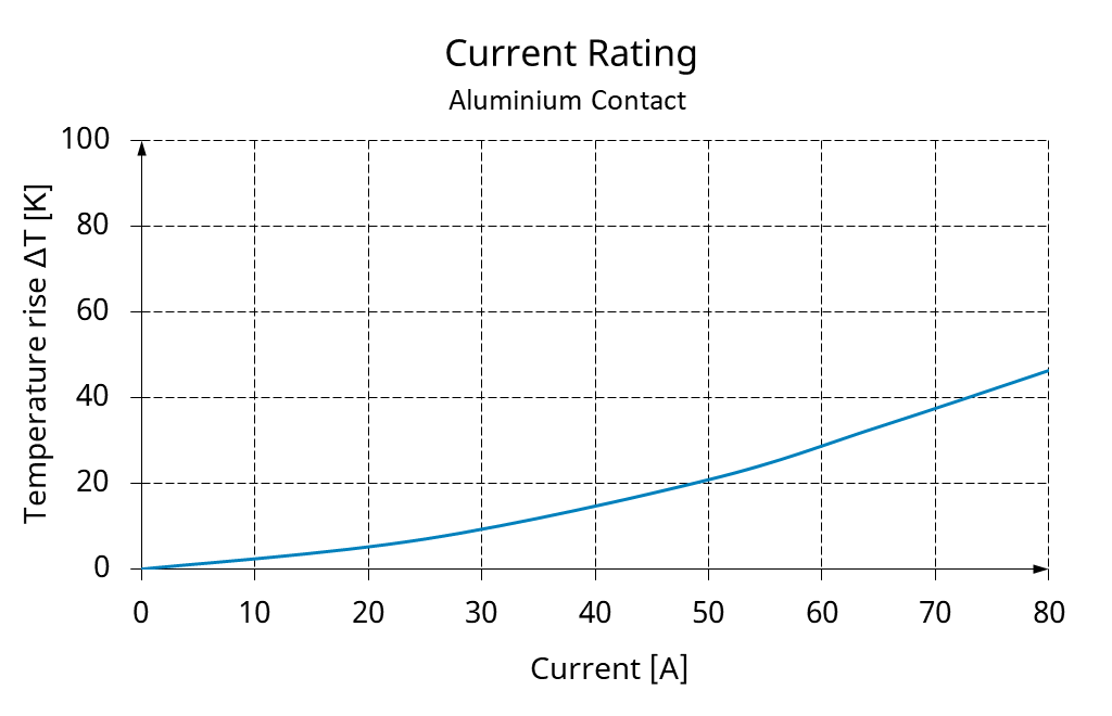 - Suitable for currents up to 50 A at ΔT ≤ 20 K on aluminium
