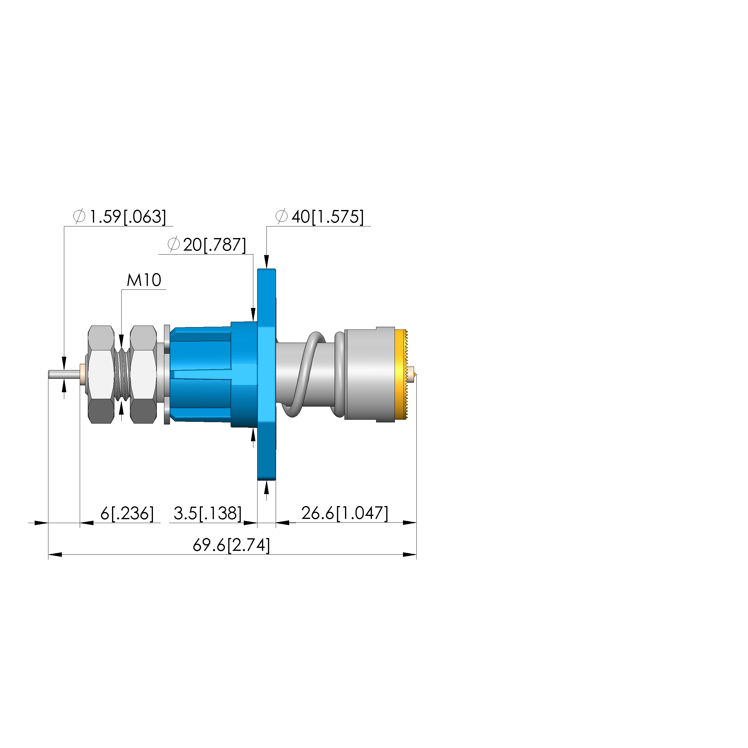 • Total length: 69.6 mm [2.74 in]