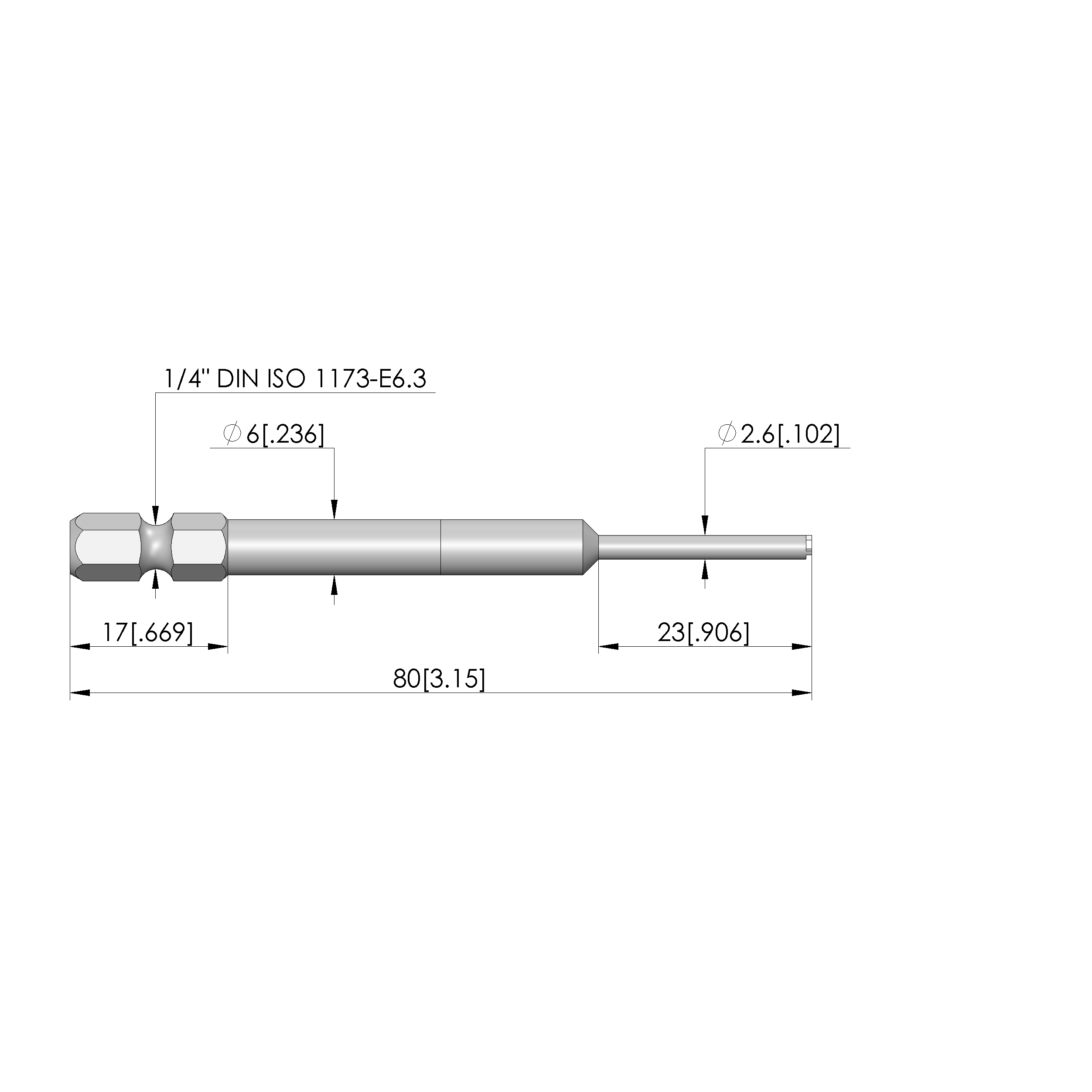 - Min. tip diameter: 0 mm [0 in]