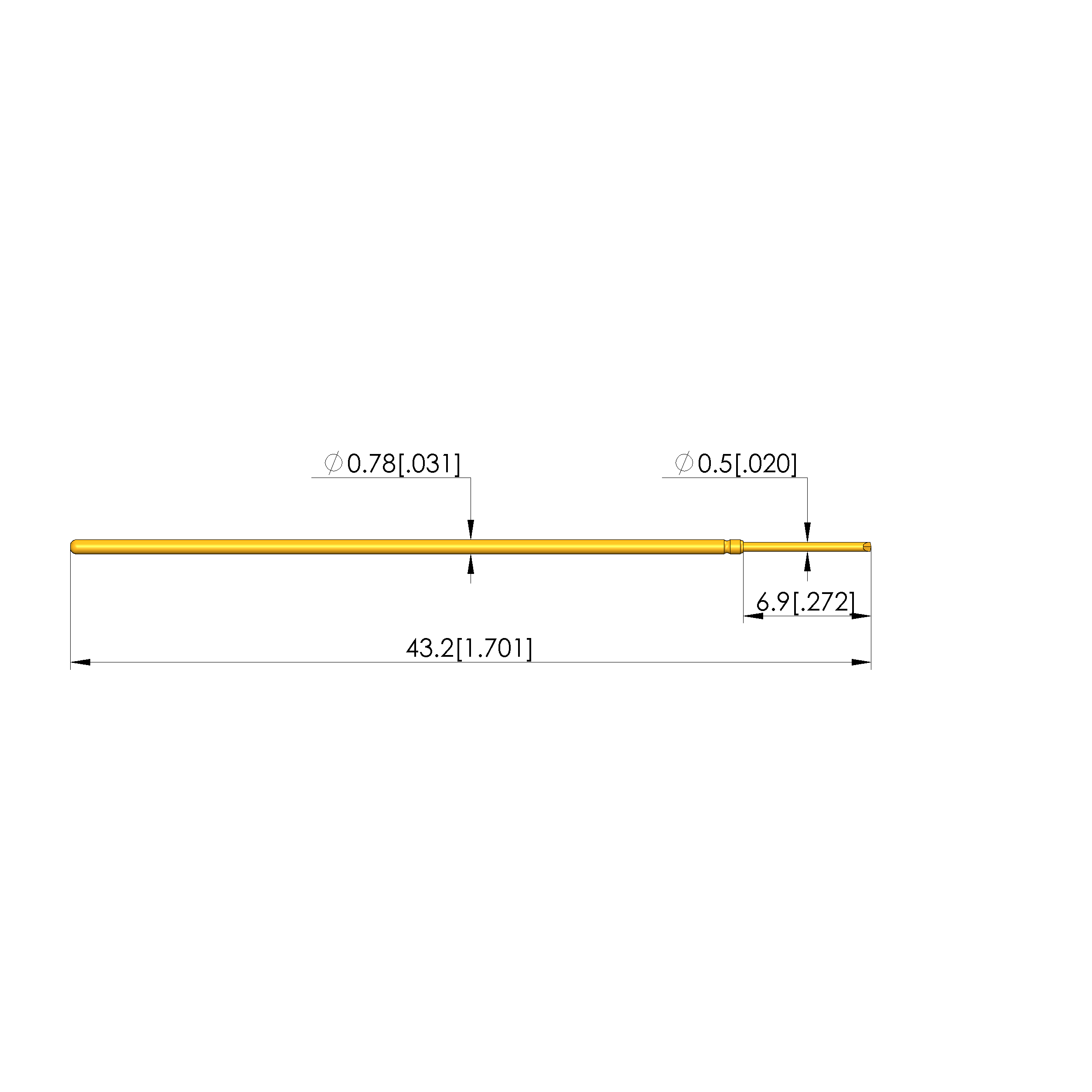 • Barrel diameter: 0.78 mm [.03 in]