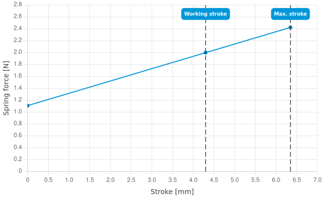 | Spring force at working stroke: | 2 N [7.19 ozf] |