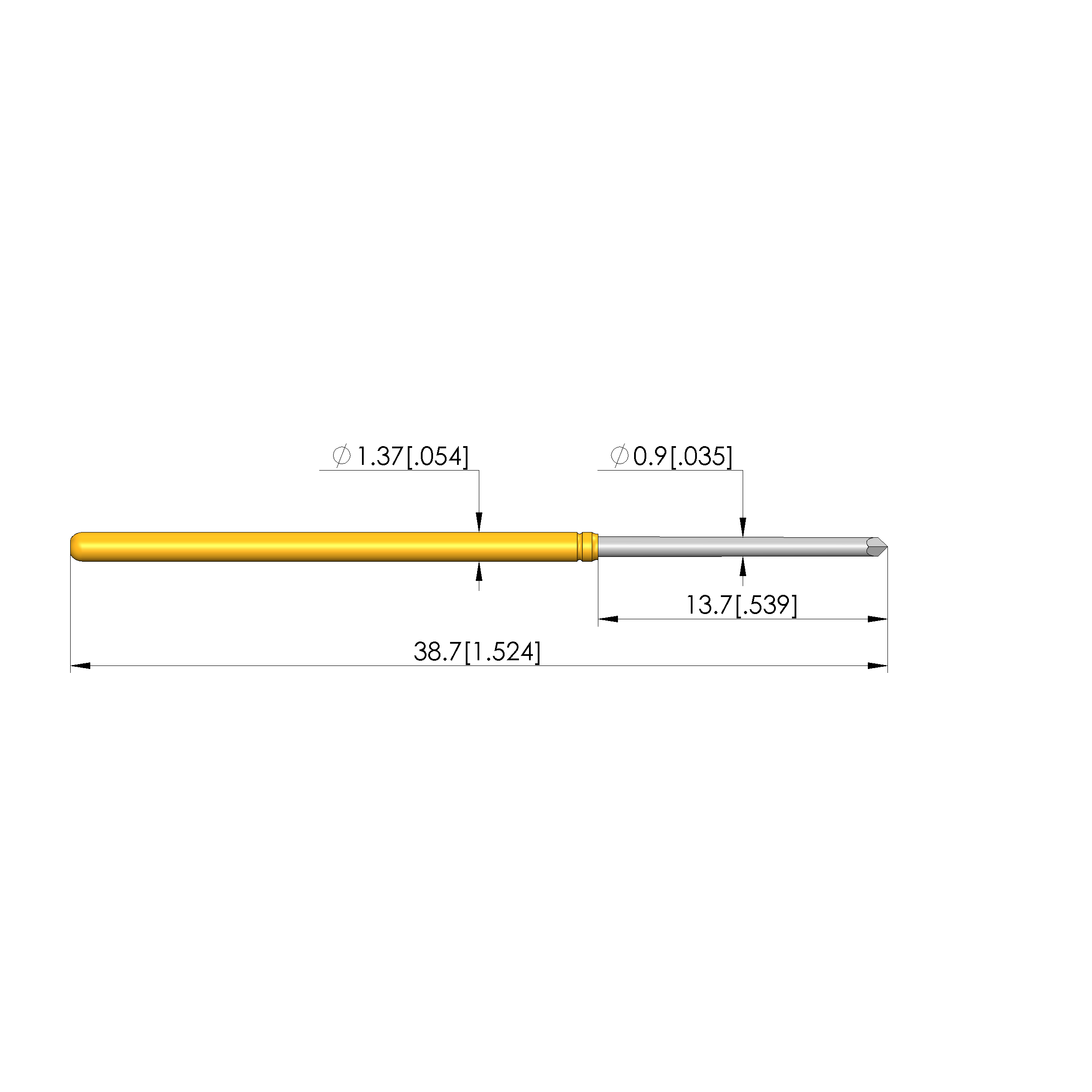 - Barrel diameter: 1.37 mm [.053 in]