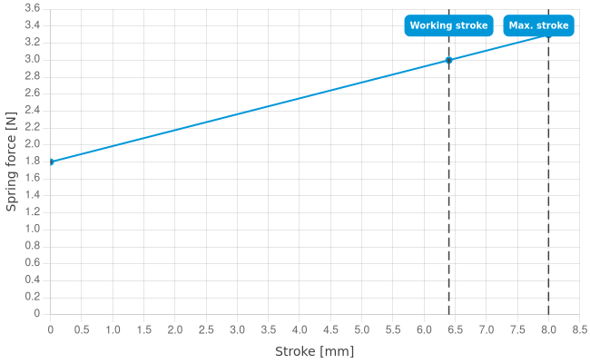 | Spring force at working stroke: | 3 N [10.7 ozf] |