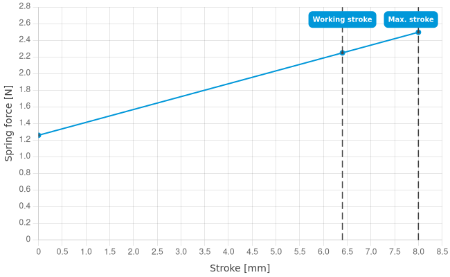 | Spring force at working stroke: | 2.25 N [8.09 ozf] |
