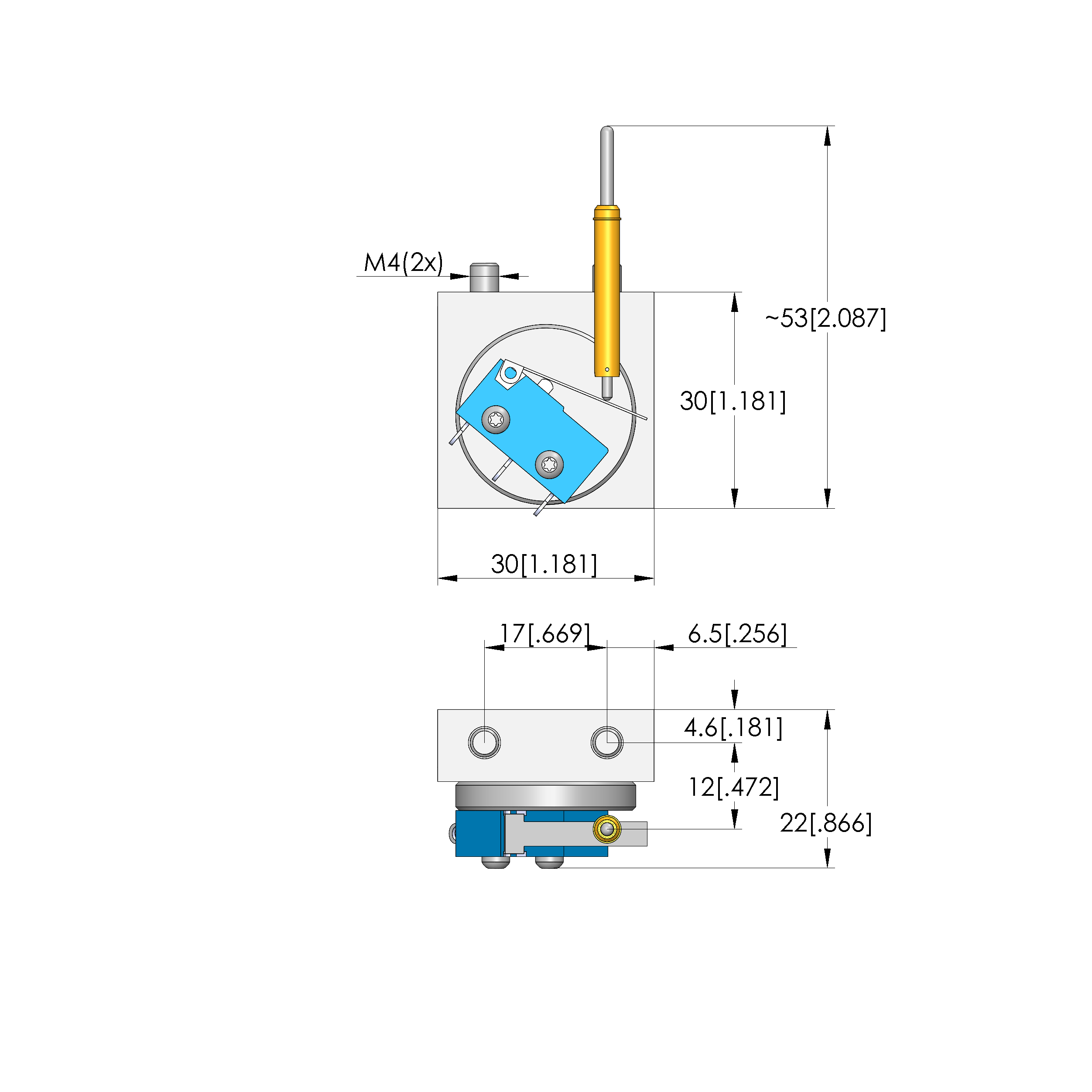 • Outer dimensionS (WxDxH): 22 x 30 x 53.2 mm [.866 x 1.18 x 2.09 in]
