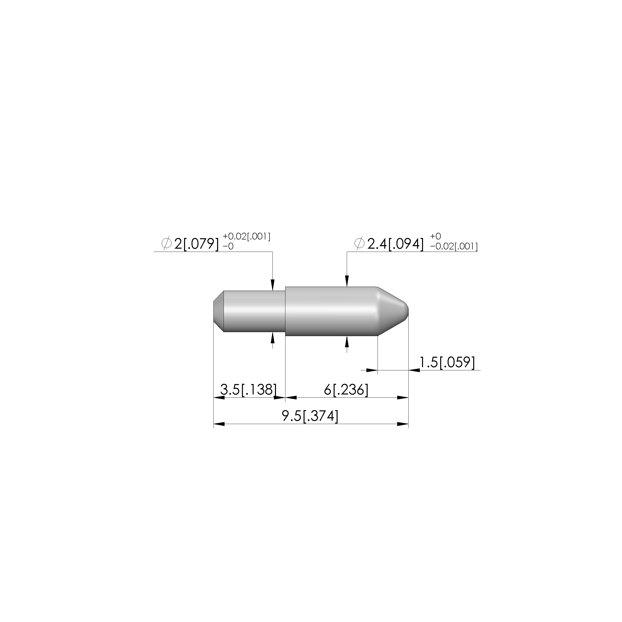 • Tip diameter: 2.4 mm [.094 in]