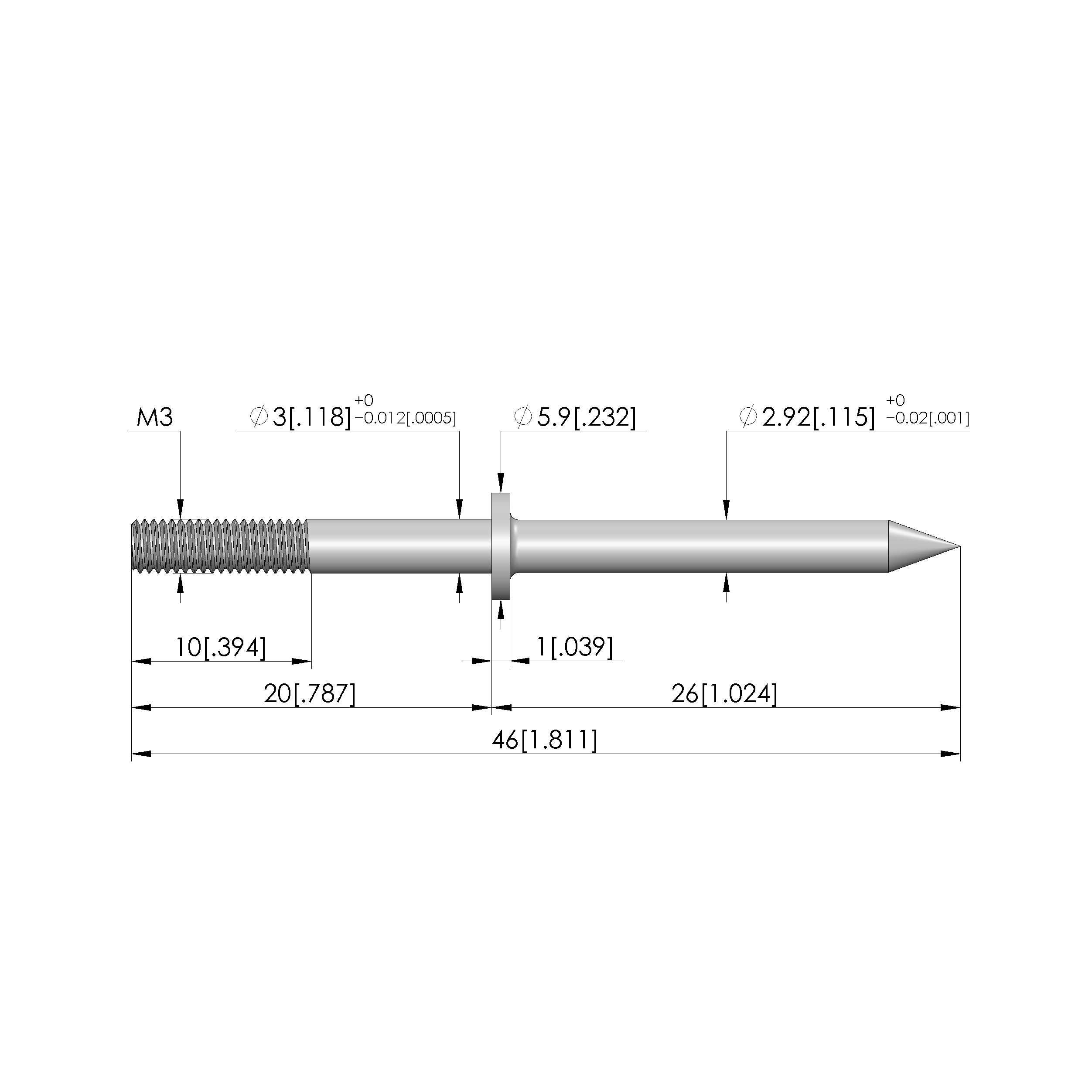 - Pin diameter: 3 mm [.118 in]