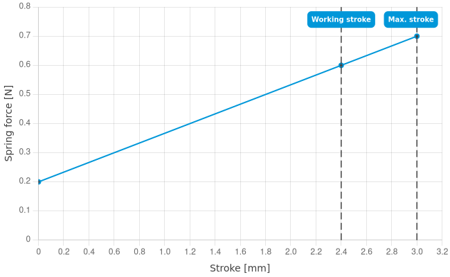 - Spring force at working stroke: 0.6 N [2.15 ozf]
