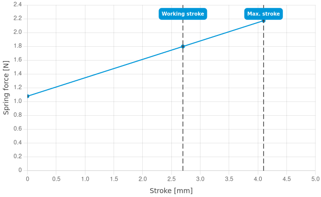 - Spring force at working stroke: 1.8 N [6.47 ozf]