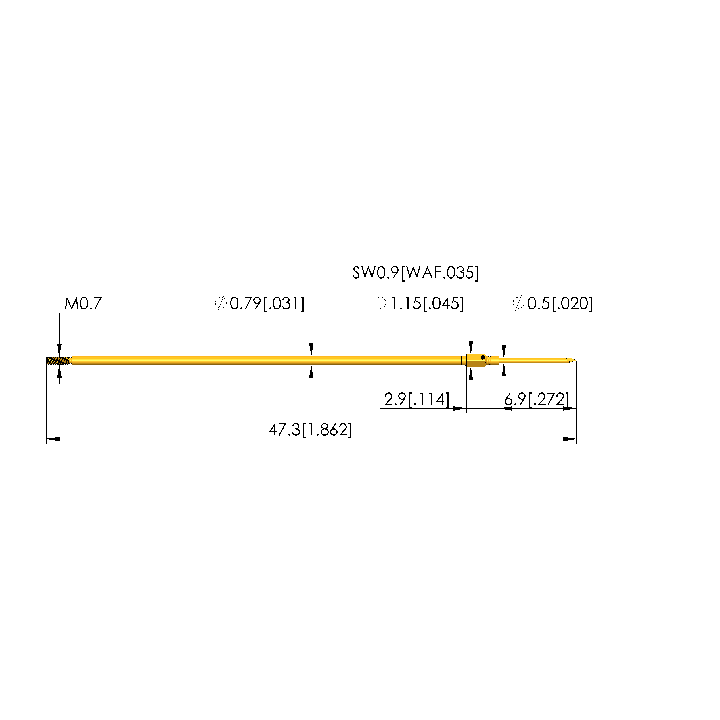 | Barrel diameter: | 0.79 mm [.031 in] |