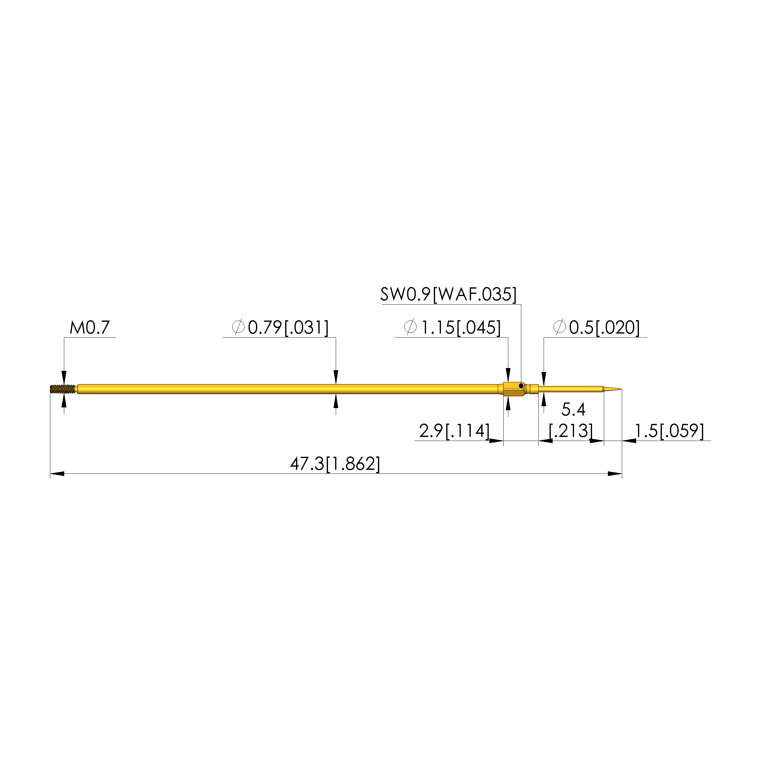 | Barrel diameter: | 0.79 mm [.031 in] |