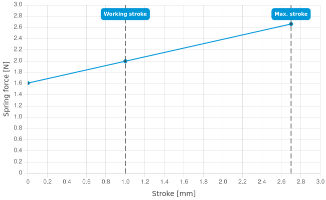 • Spring force at working stroke: 2 N [7.19 ozf]