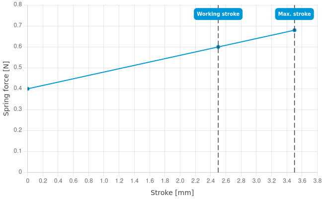 • Spring force at working stroke: 0.6 N [2.15 ozf]