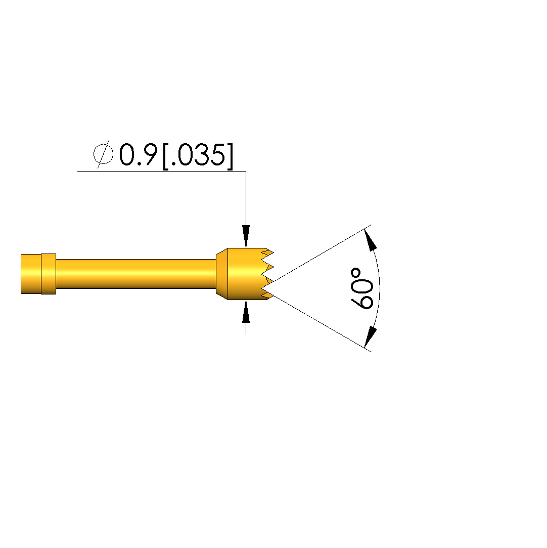 - Tip diameter: 0.9 mm [.035 in]