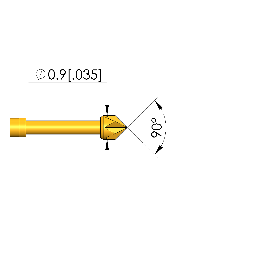 - Tip diameter: 0.9 mm [.035 in]