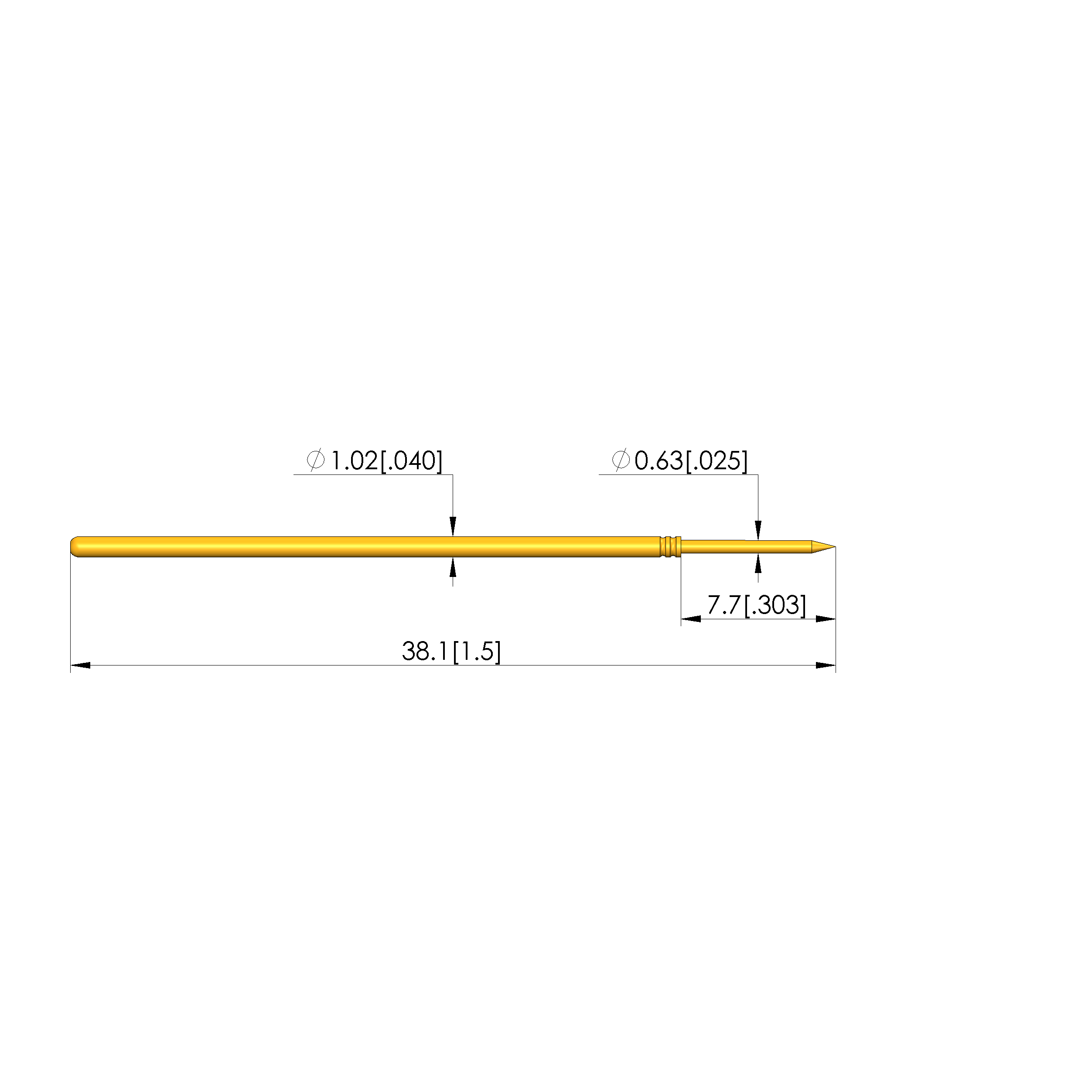 • Barrel diameter: 1.02 mm [.04 in]