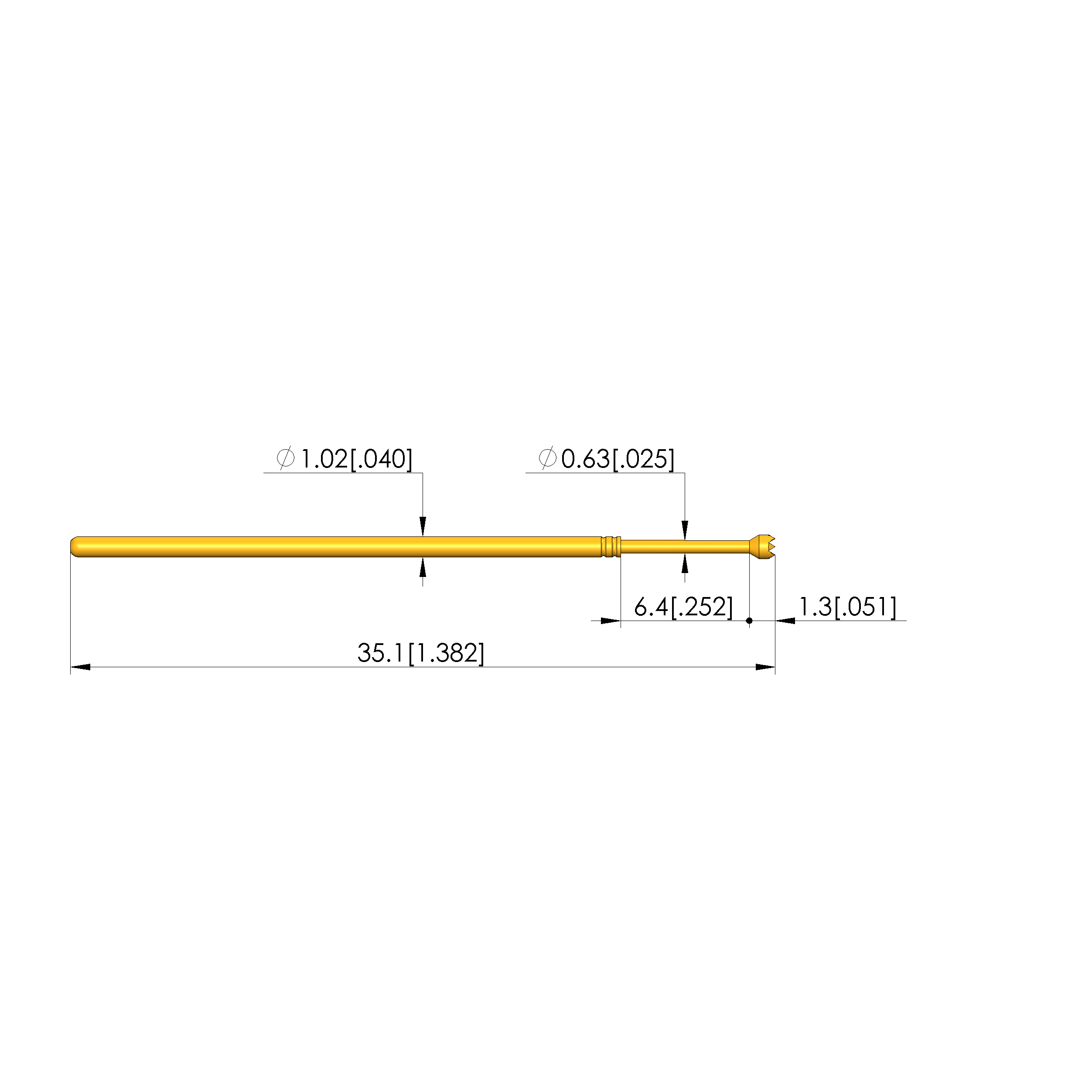 - Barrel diameter: 1.02 mm [.04 in]