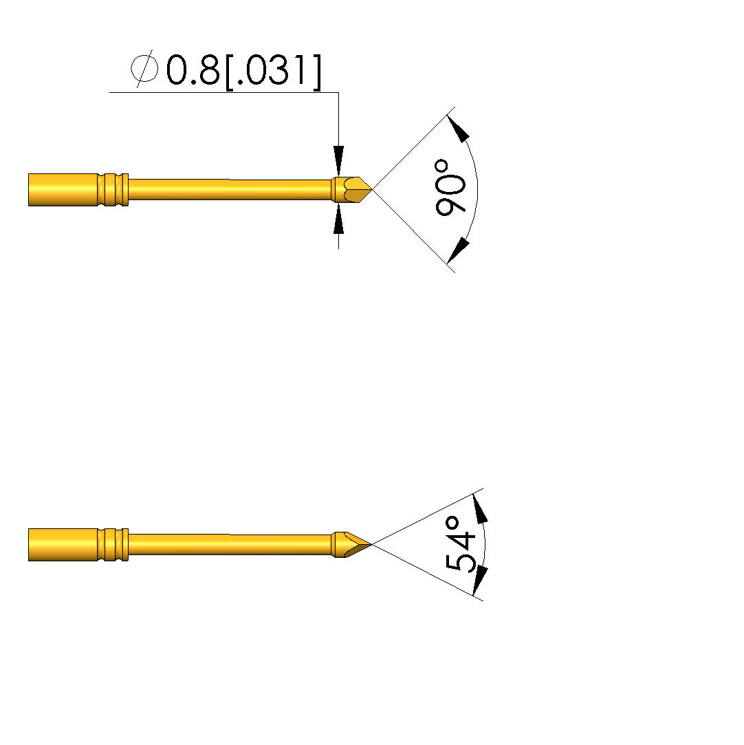 - Tip diameter: 0.8 mm [.031 in]