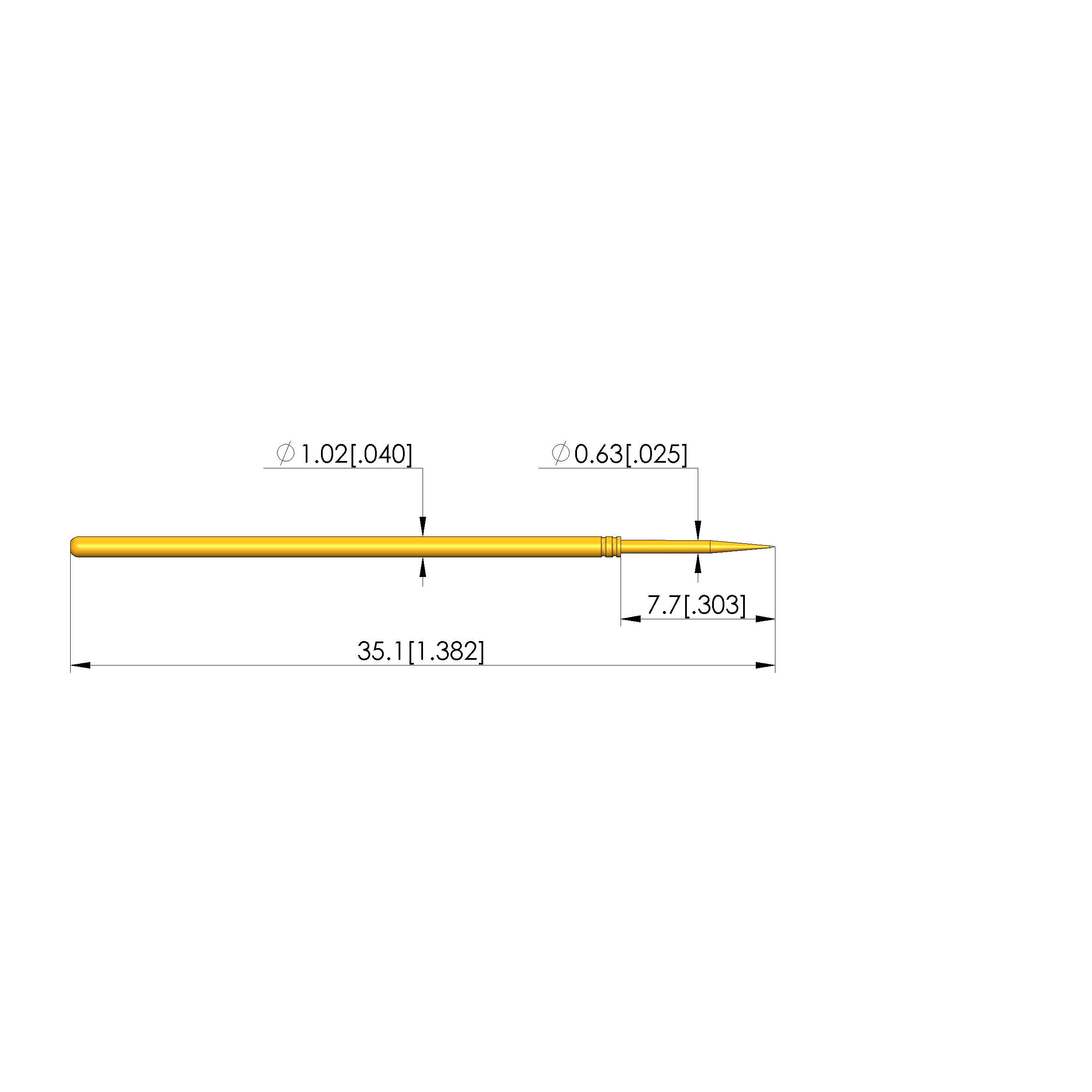 - Tip diameter: 0.64 mm [.025 in]