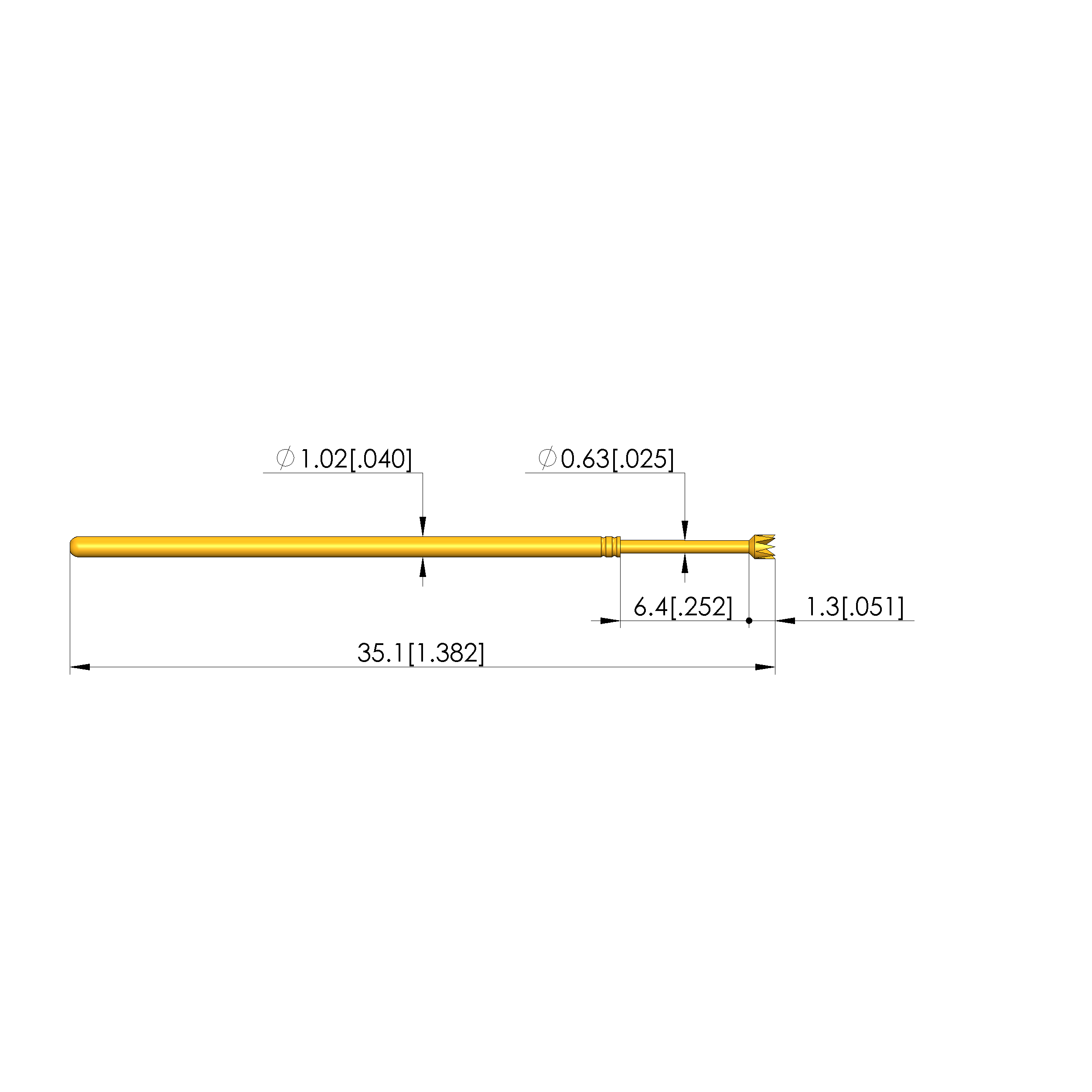 • Barrel diameter: 1.02 mm [.04 in]