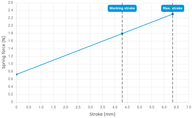 - Spring force at working stroke: 1.8 N [6.47 ozf]