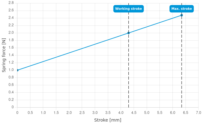 - Spring force at working stroke: 0.2 N [.719 ozf]
