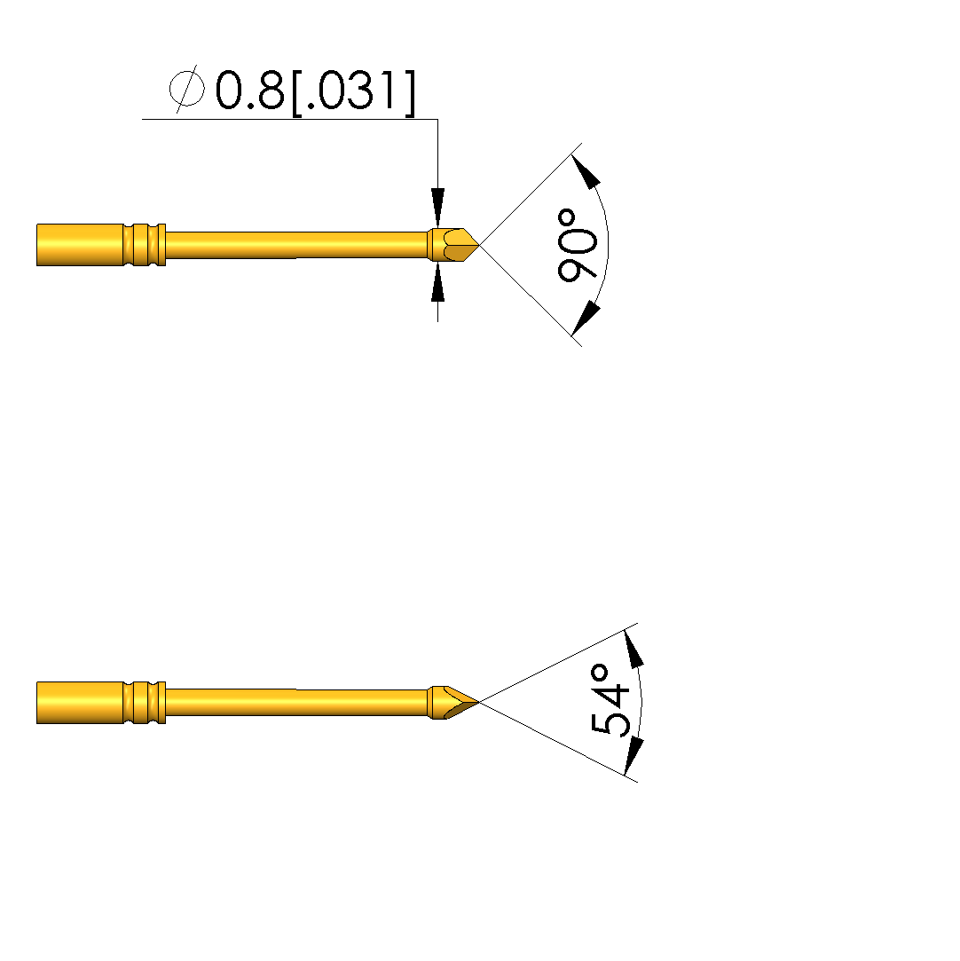 - Tip diameter: 0.8 mm [.031 in]