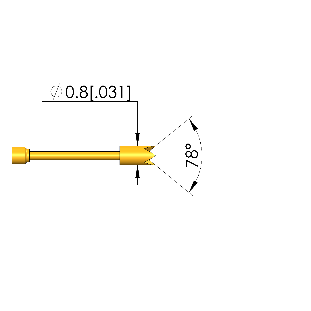 - Tip diameter: 0.8 mm [.031 in]