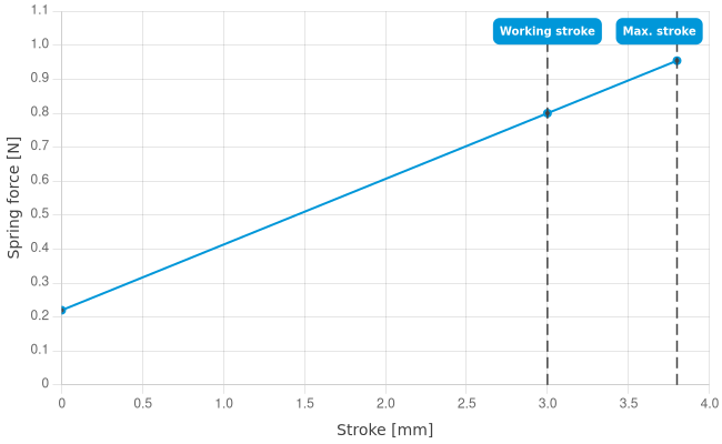- Spring force at working stroke: 0.8 N [2.87 ozf]