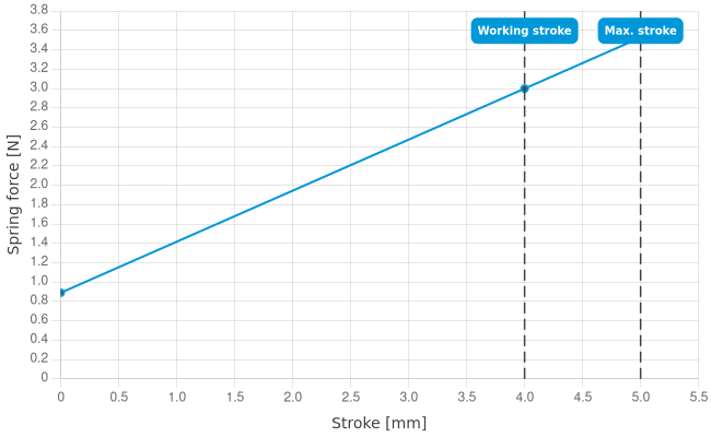 | Spring force at working stroke: | 3 N [10.7 ozf] |