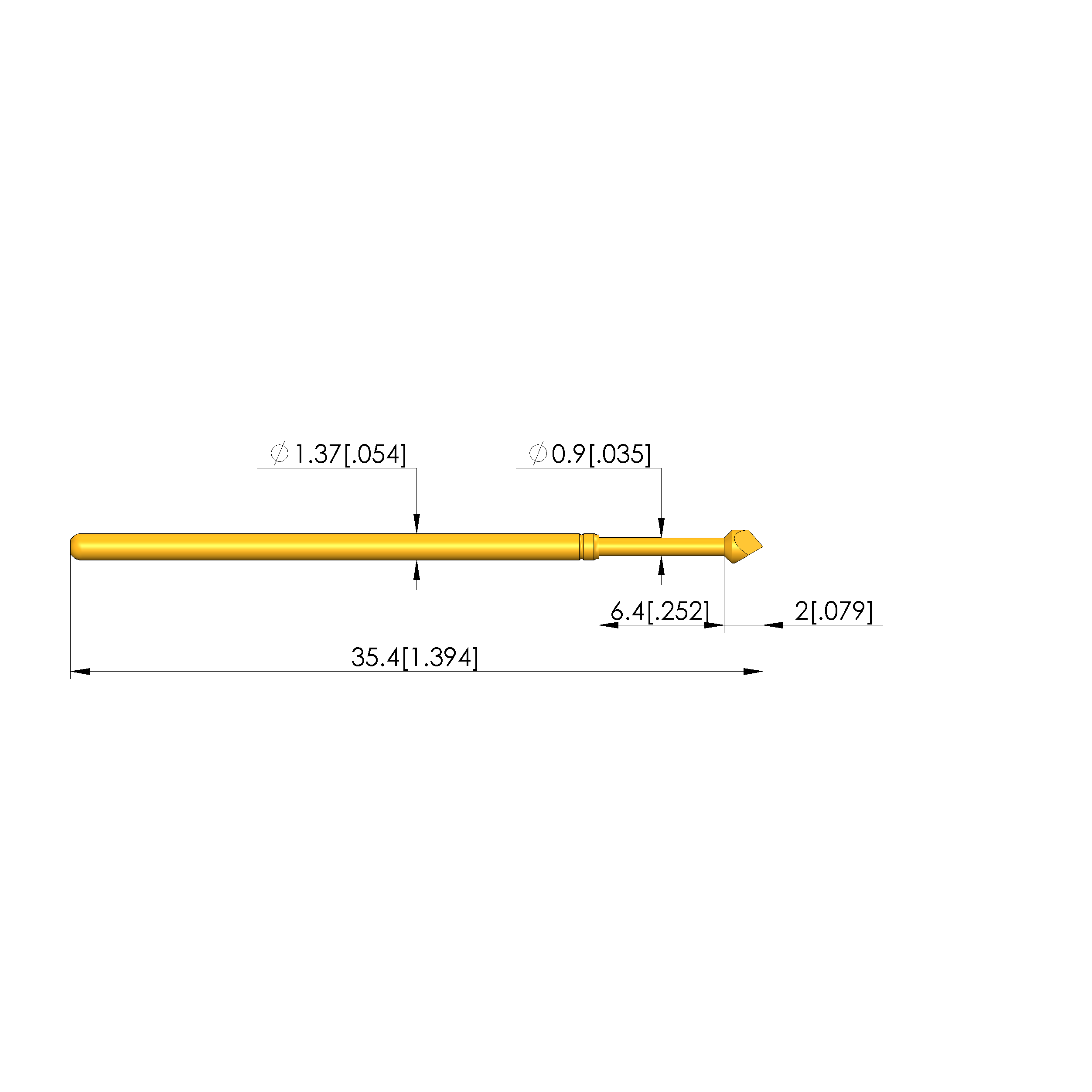 - Barrel diameter: 1.37 mm [.053 in]