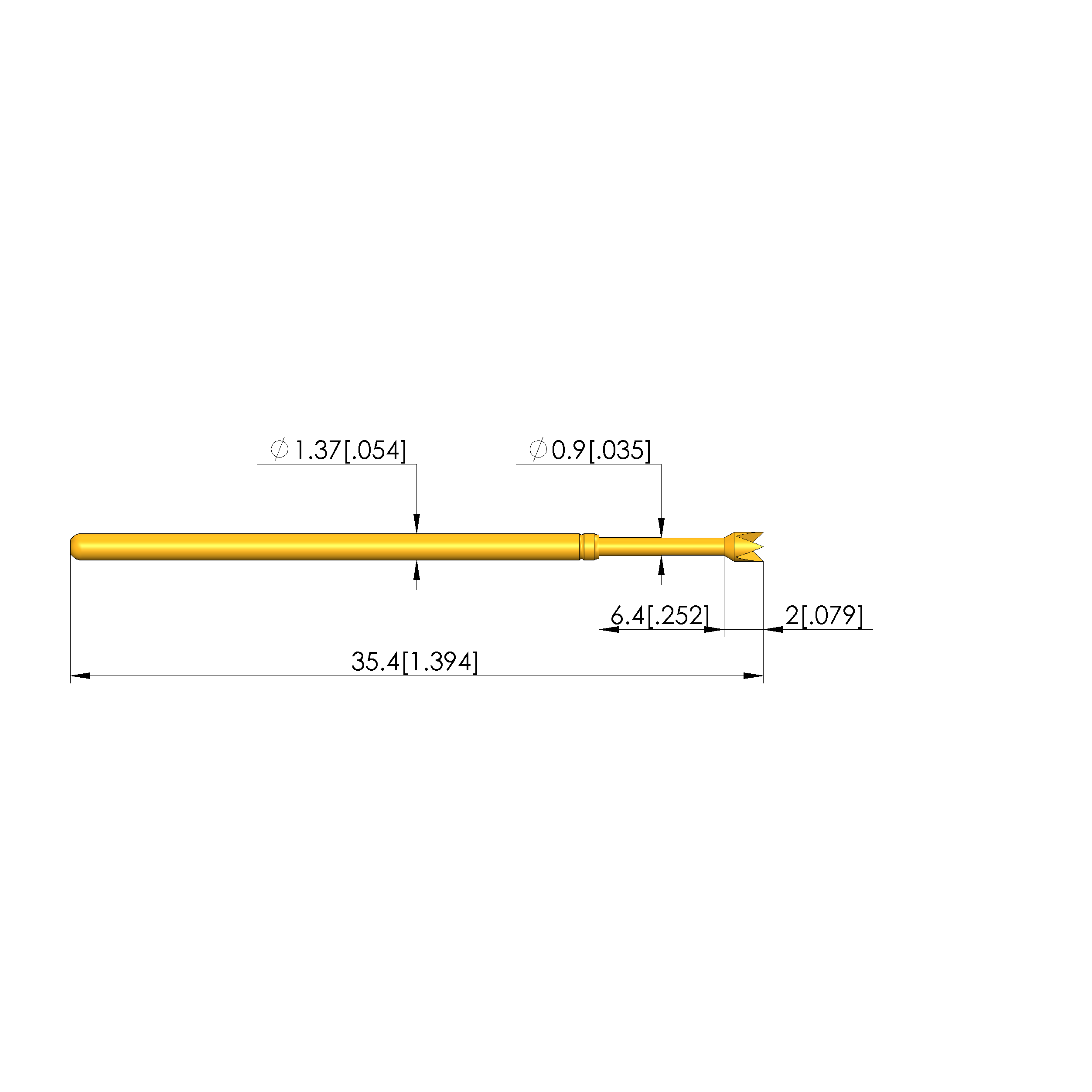 • Barrel diameter: 1.37 mm [.053 in]