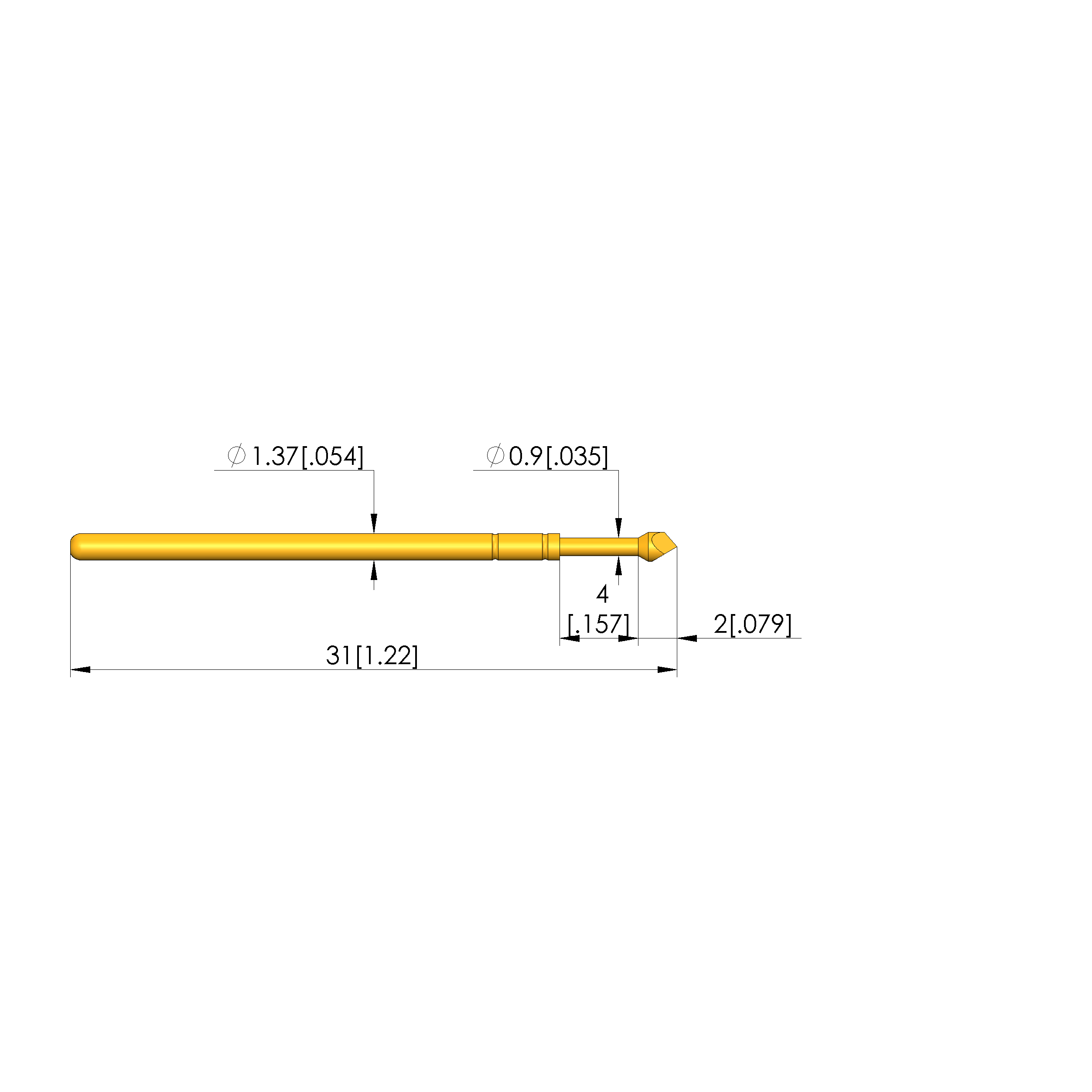• Barrel diameter: 1.37 mm [.053 in]