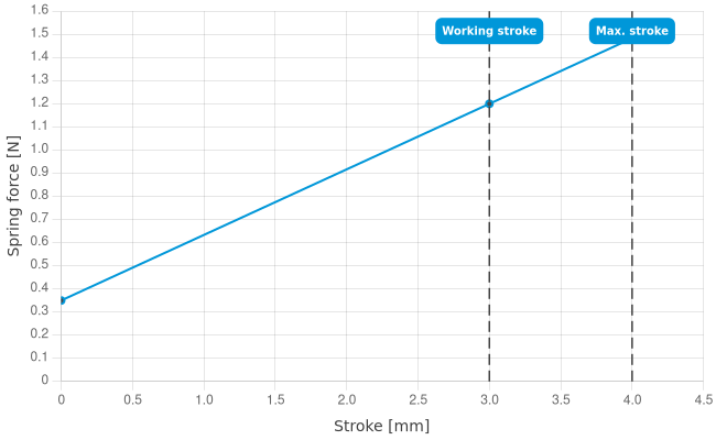 • Spring force at working stroke: 1.2 N [4.31 ozf]