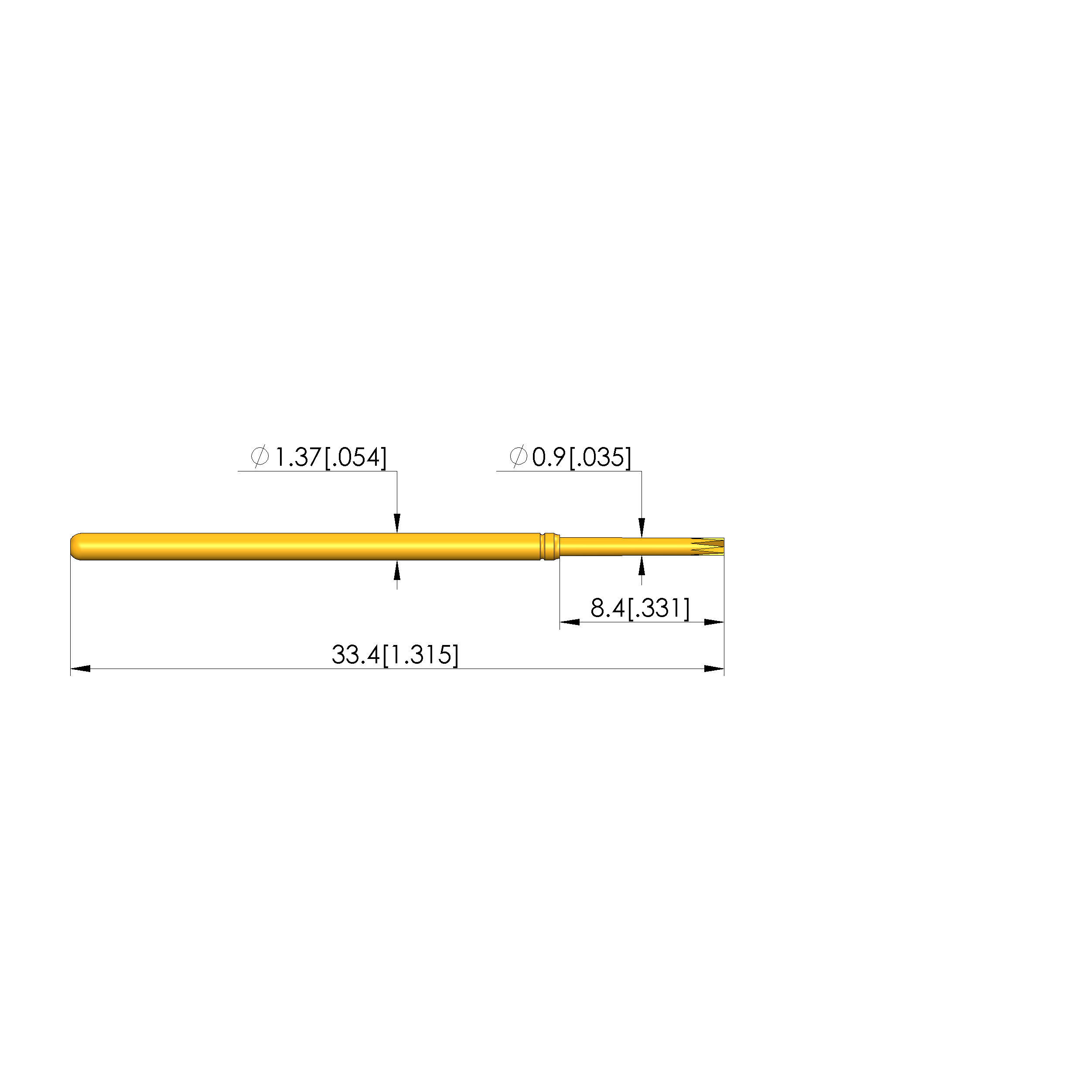 • Barrel diameter: 1.37 mm [.053 in]