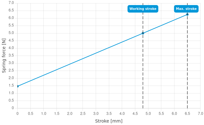 • Spring force at working stroke: 5 N [17.9 ozf]