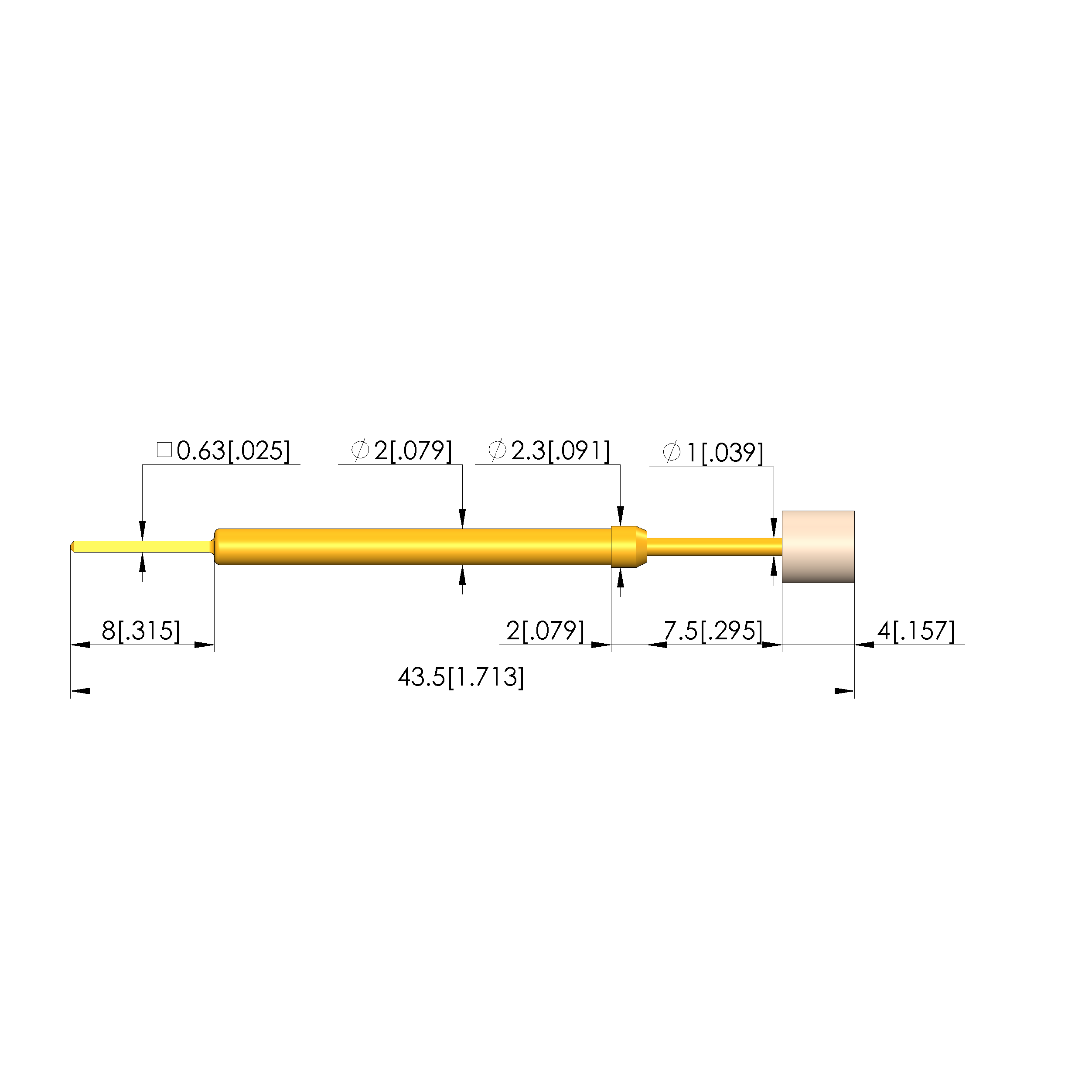 - Barrel diameter: 2 mm [.078 in]