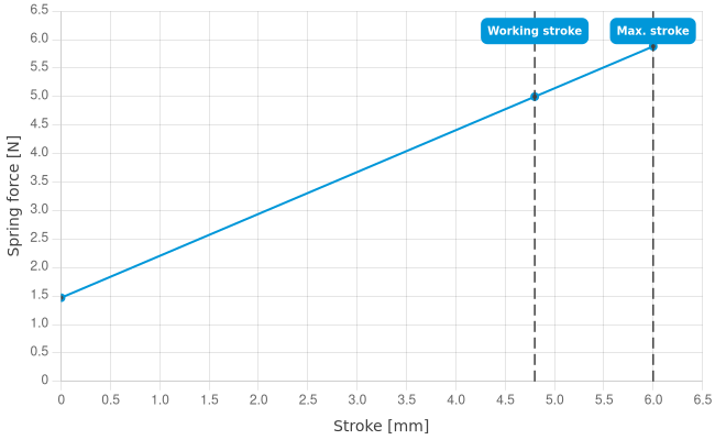 - Spring force at working stroke: 5 N [17.9 ozf]