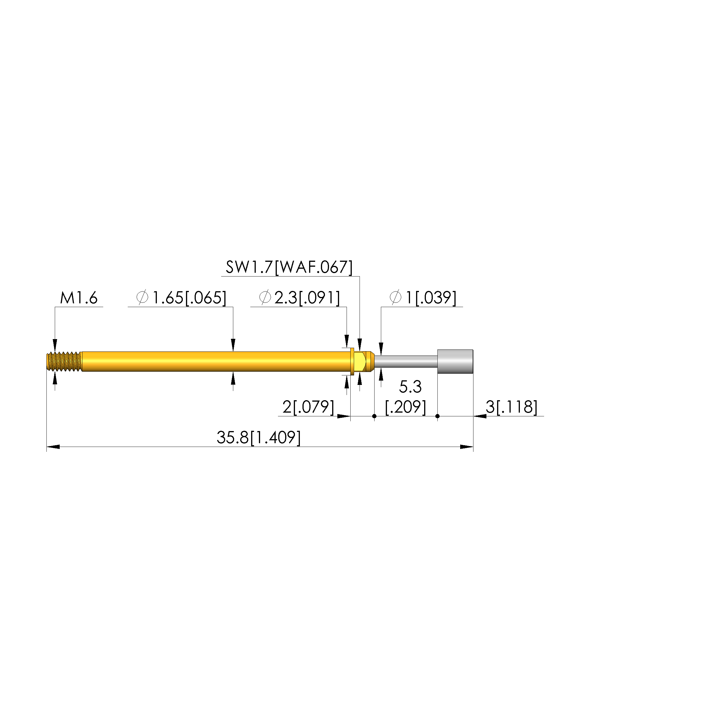 | Total length: | 35.8 mm [1.4 in] |