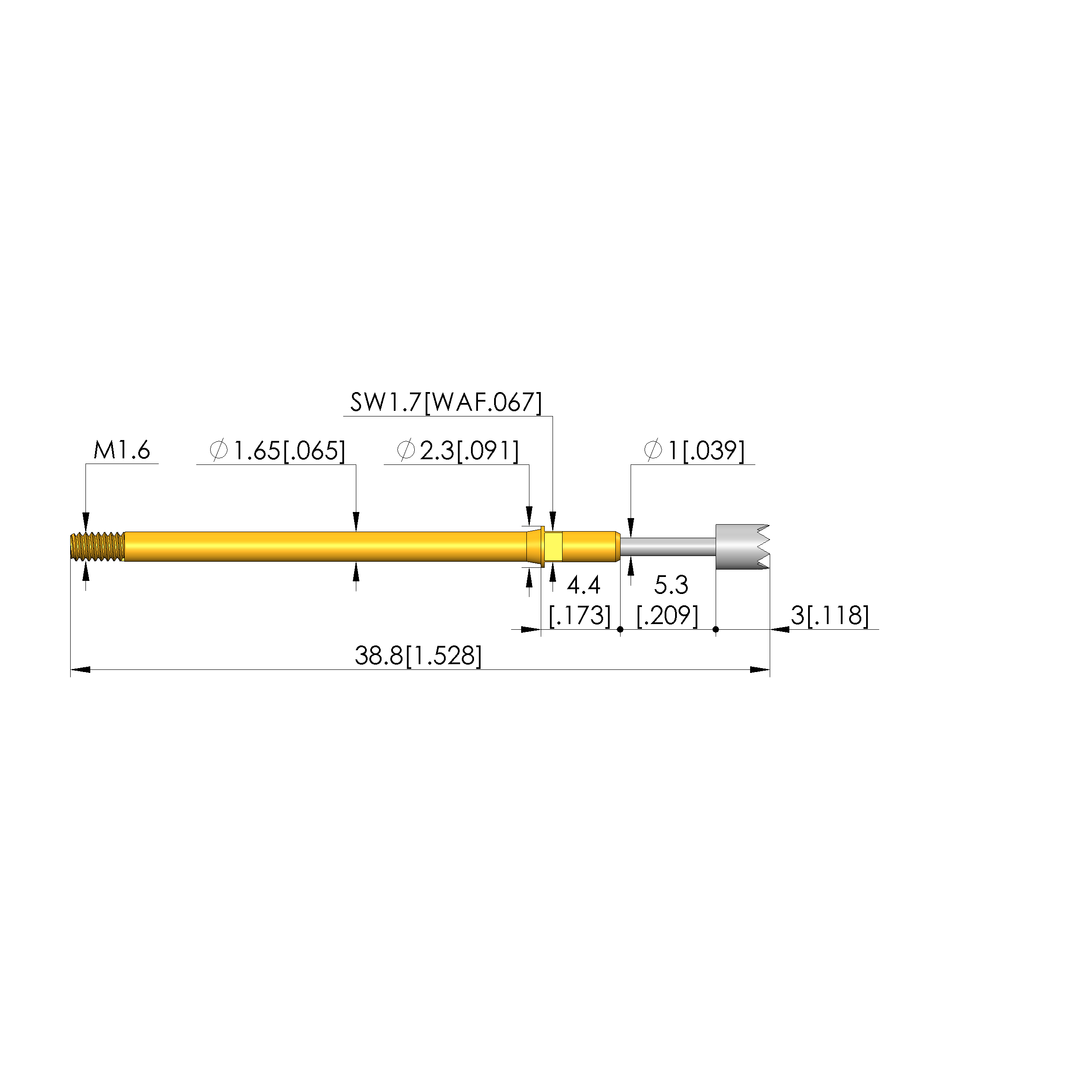 • Barrel diameter: 1.65 mm [.064 in]
