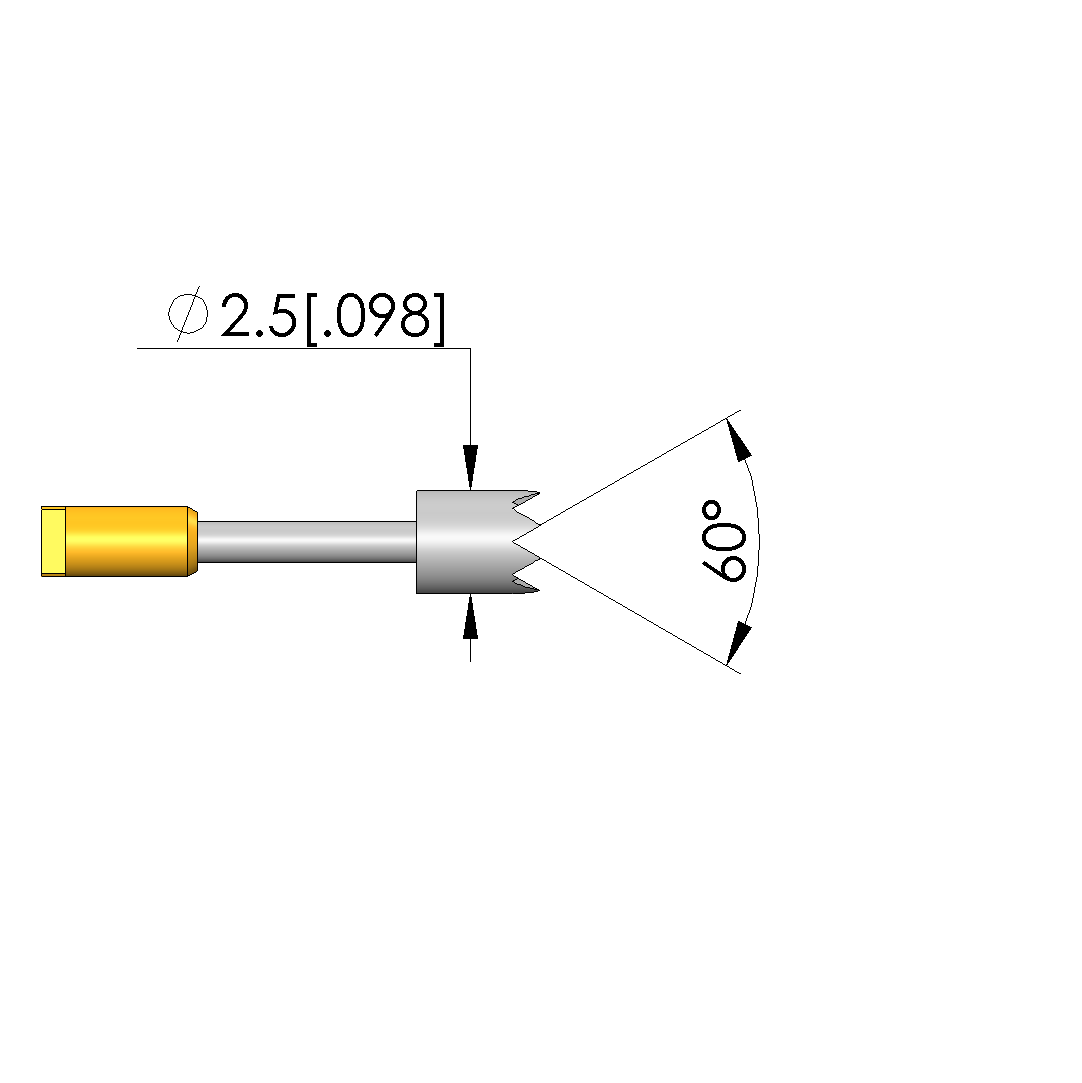 • Tip diameter: 2.5 mm [.098 in]