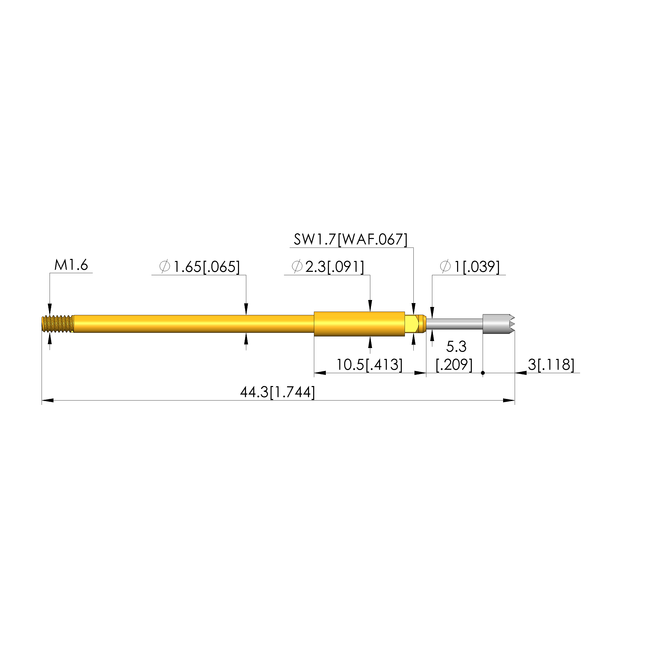 • Spring force at working stroke: 2.25 N [8.09 ozf]