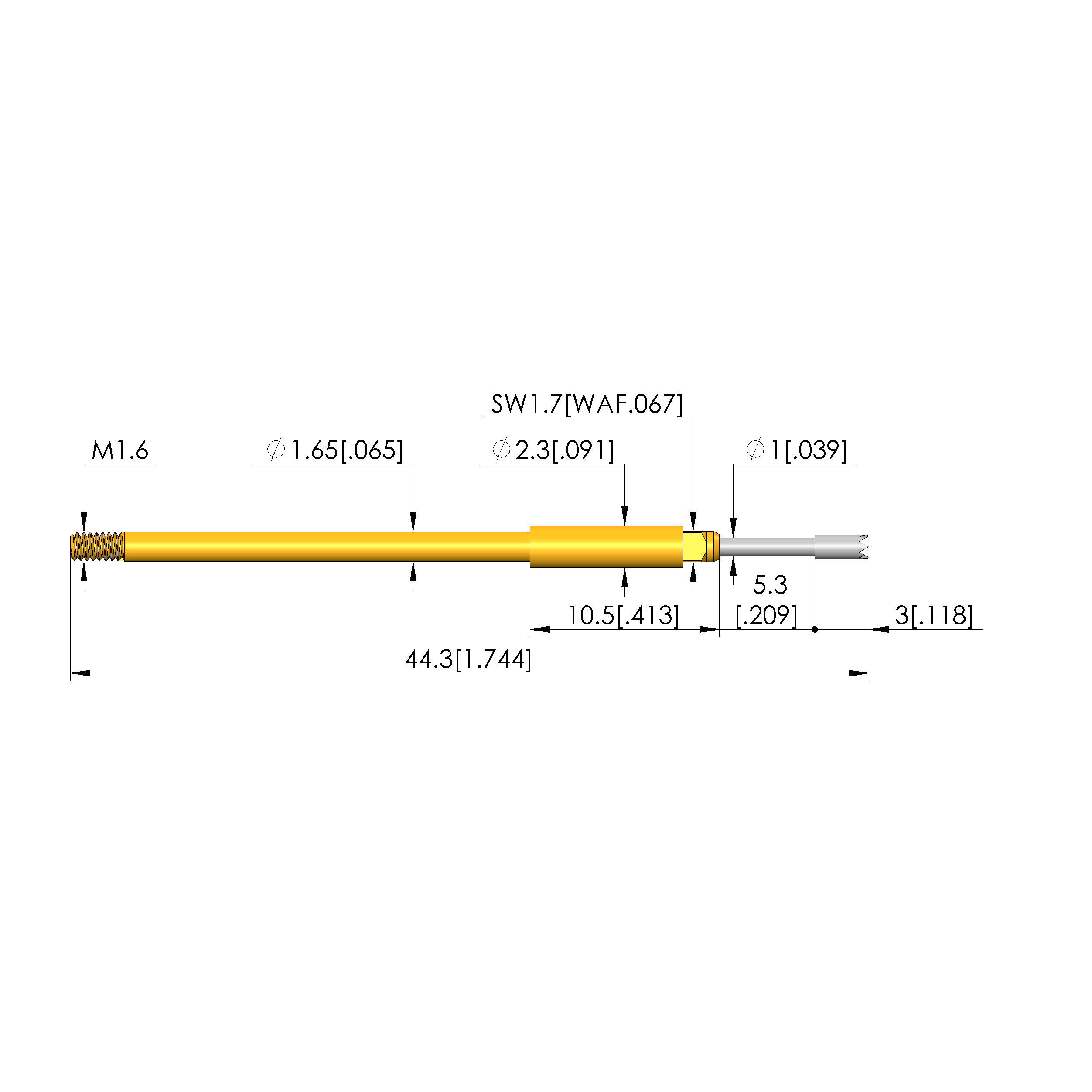 | Total length: | 44.3 mm [1.74 in] |